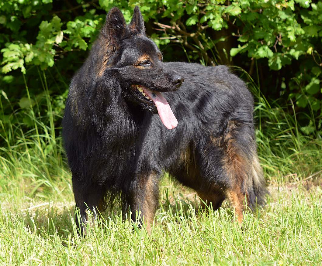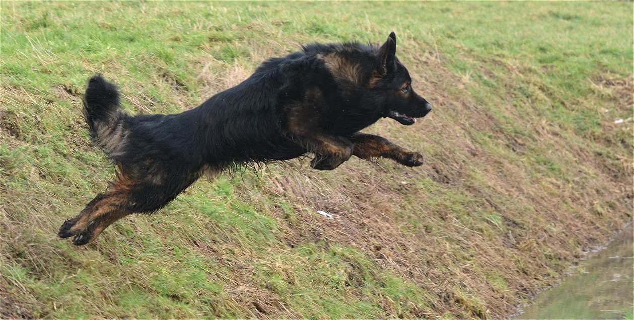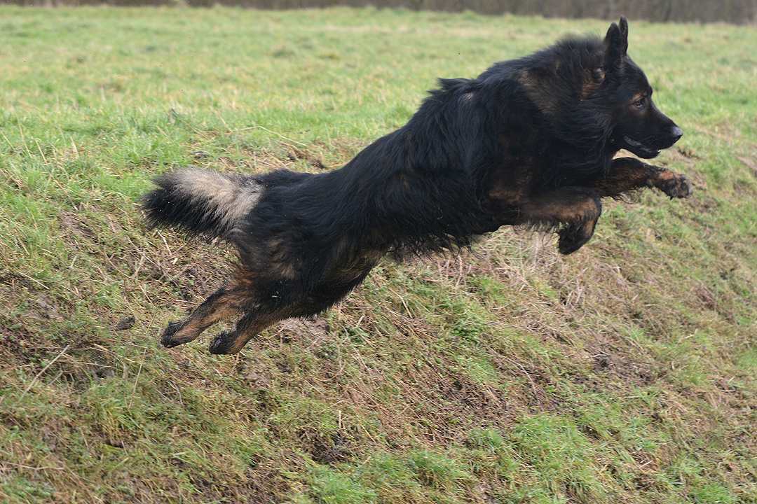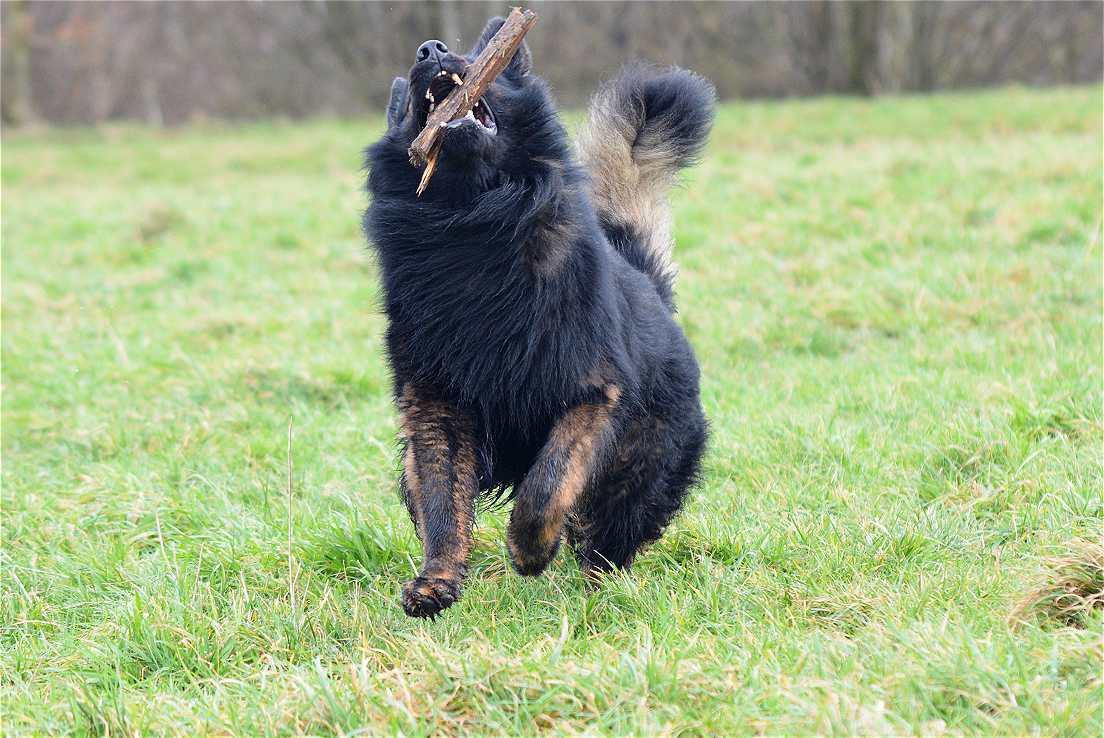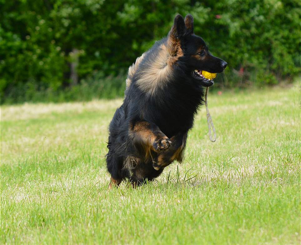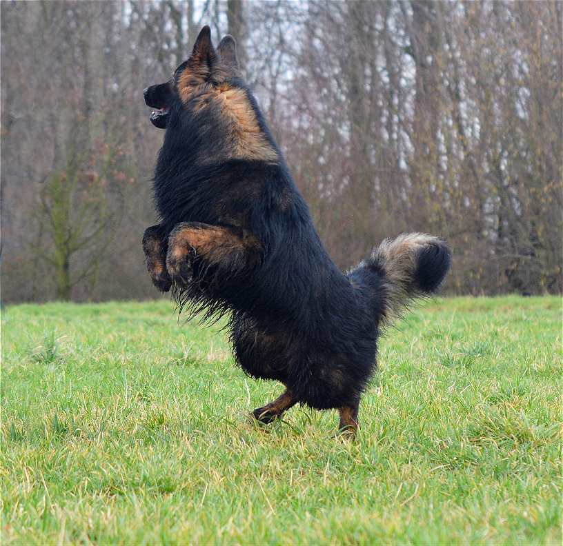 Dieser Hund verfügt über eine gewaltige Sprungkraft, ist gnadenlos gut im Bewegungsablauf. Seine Farbe und sein immenses Fell, sowie seine enorme Ausstrahlung vererbt er immer und auf jede Hündin. Aber... Ich persönlich würde niemals, auch nur eine im entferntesten gleich gelagerte Hündin, nach ihm eindecken.