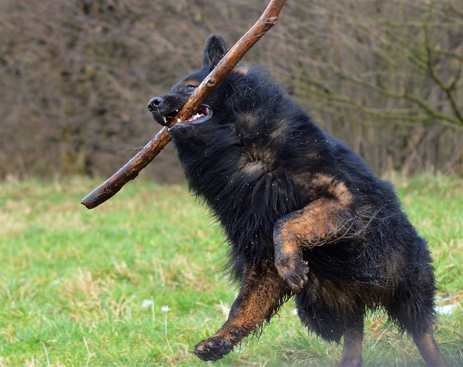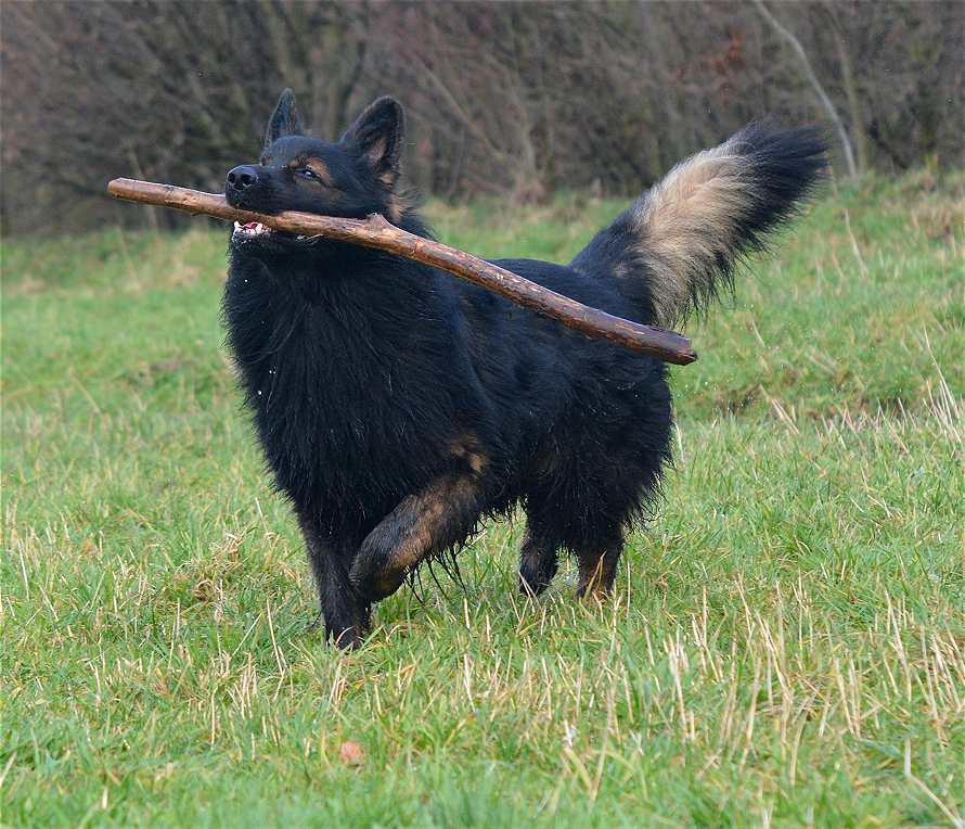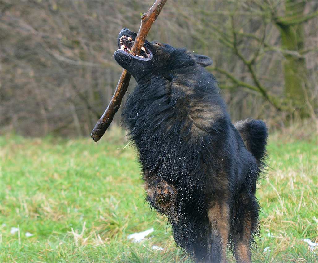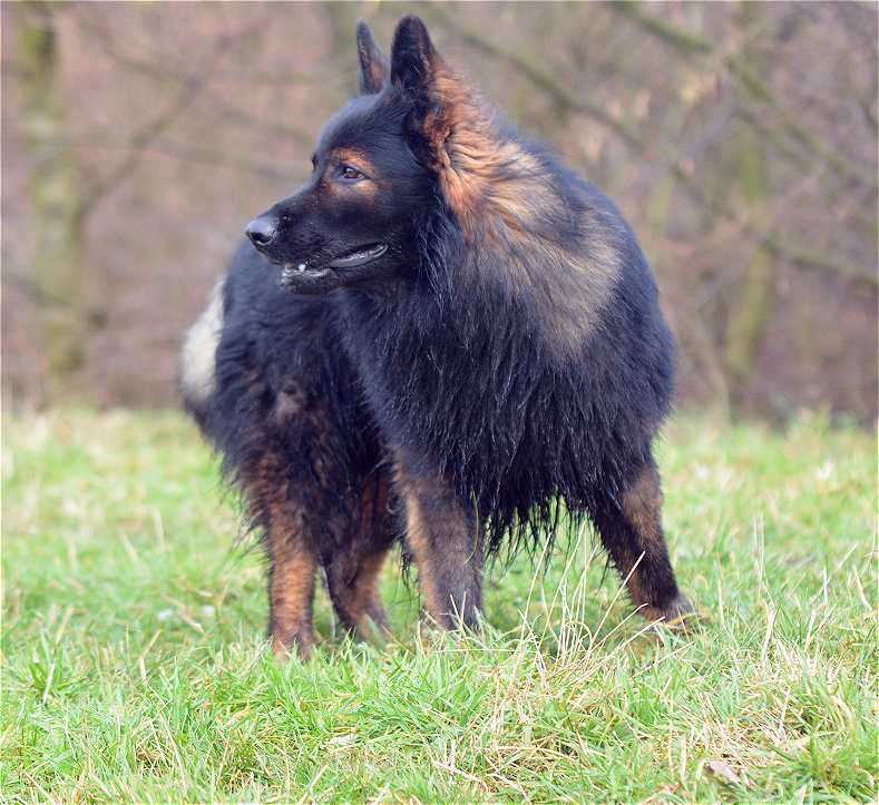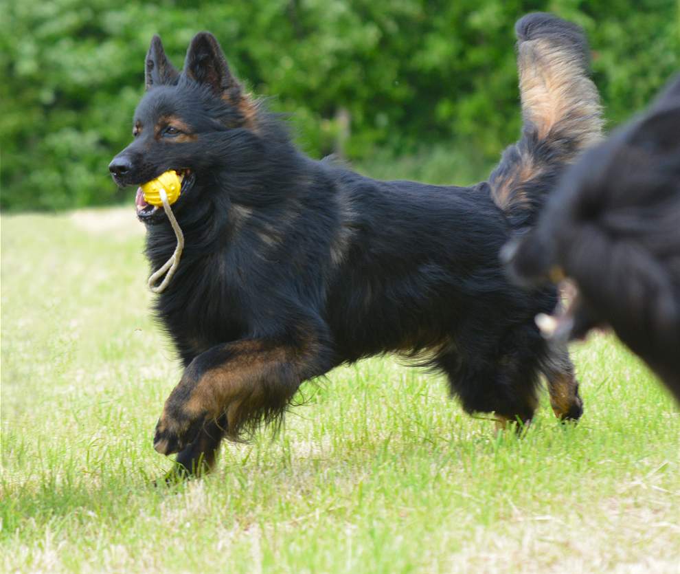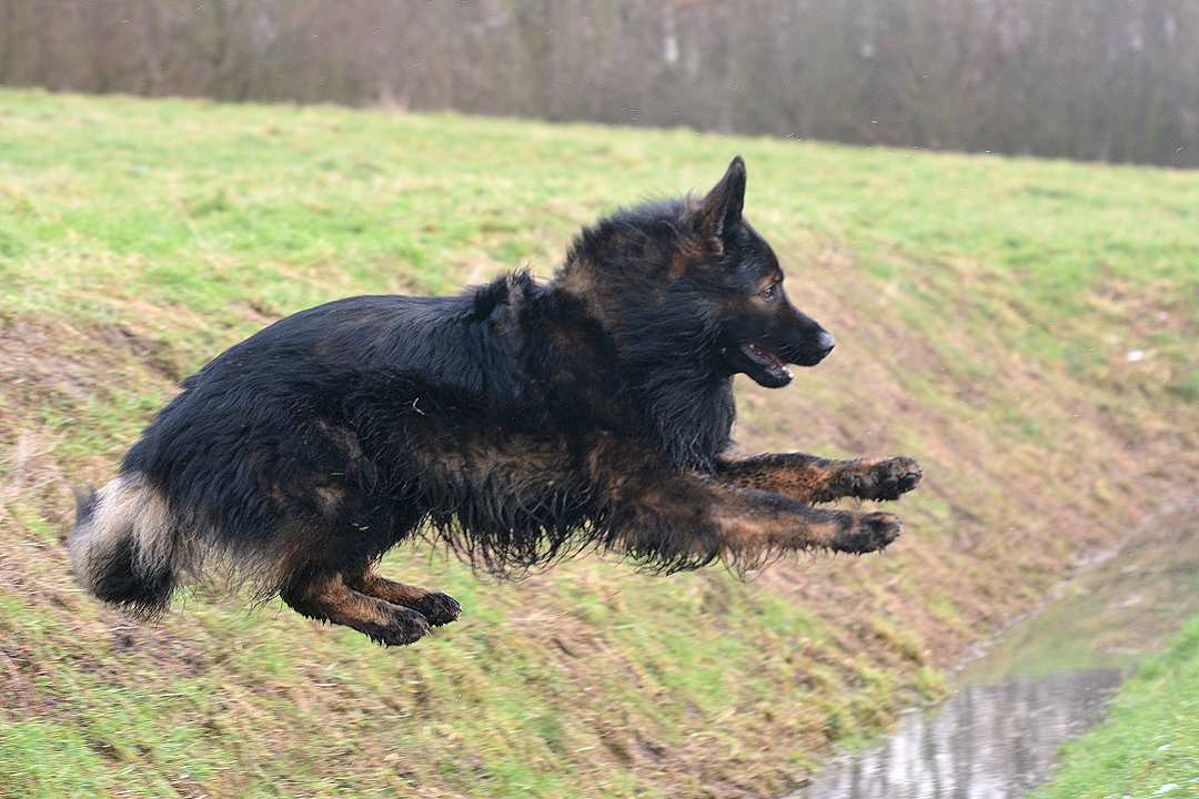 Dieser Hund verfügt über eine gewaltige Sprungkraft, ist gnadenlos gut im Bewegungsablauf. Seine Farbe und sein immenses Fell, sowie seine enorme Ausstrahlung vererbt er immer und auf jede Hündin. Aber... Ich persönlich würde niemals, auch nur eine im entferntesten gleich gelagerte Hündin, nach ihm eindecken.