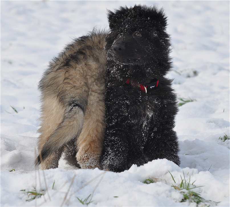 Wenigstens ist ihr zur Zeit nicht langweilig. Ihr Bruder Mephisto ist noch bei mir, dieser kleine Kerl ist ein Herzensbrecher, brav .. riesengroß.. tollpatschig mit irren dicken Beinen, einem riesigen Kopf und total lieb!