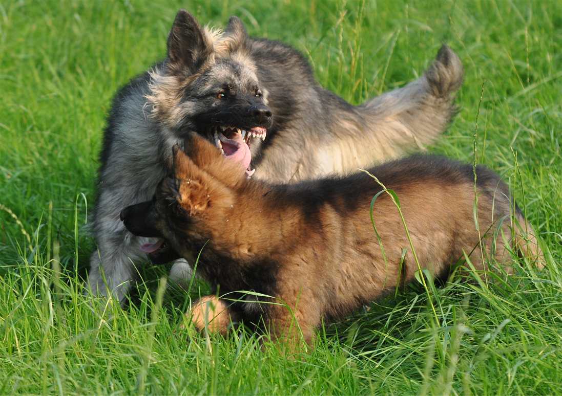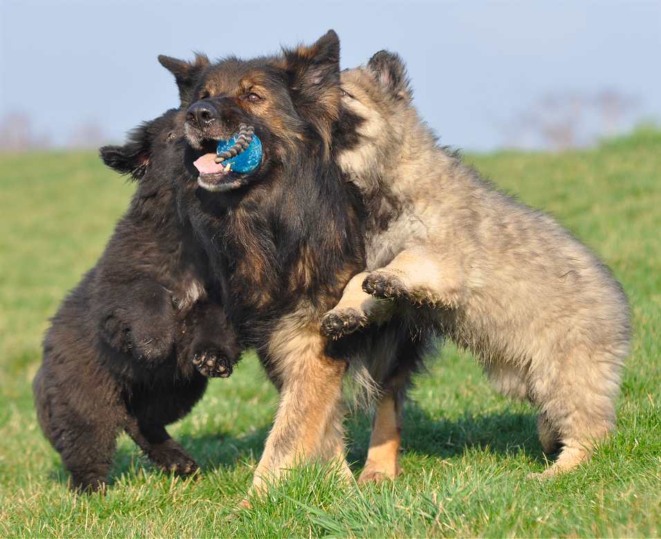 Natürlich sieht dieses Bild so aus, als wäre es das krasse Gegenteil von dem, was ich gerade erzählt habe. Ist es aber nicht. Crash droht in diesem Moment, weil Viper sie andauernd am "Frack" zieht, aber... schon das nächste Foto zeigt, das egal wie sehr Crash gerade im Trieb ist, (sie ist ihrem Ball hinterher gerannt) es einfach nur bei der Drohung bleibt, weiter passiert nämlich gar nichts. Crash ist auch vom Exteriteur eine ungewöhnliche Hündin, abgesehen von ihrer Größe, hat sie einen längeren Fang als meine anderen Hunde, steht vollkommen gerade und hochaufgerichtet. Sie ist inzwischen größer und auch länger als ihre Mutter