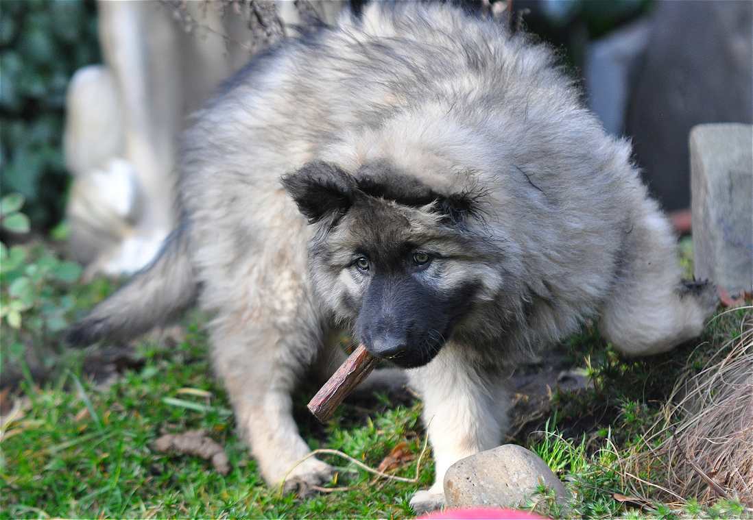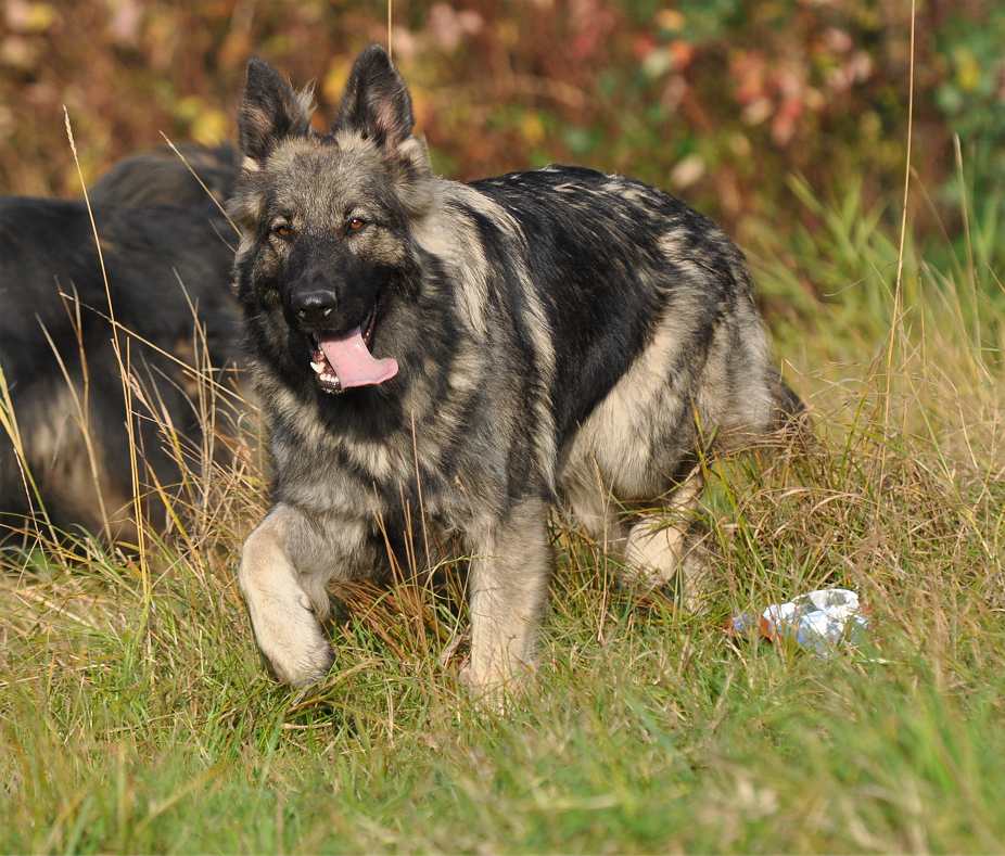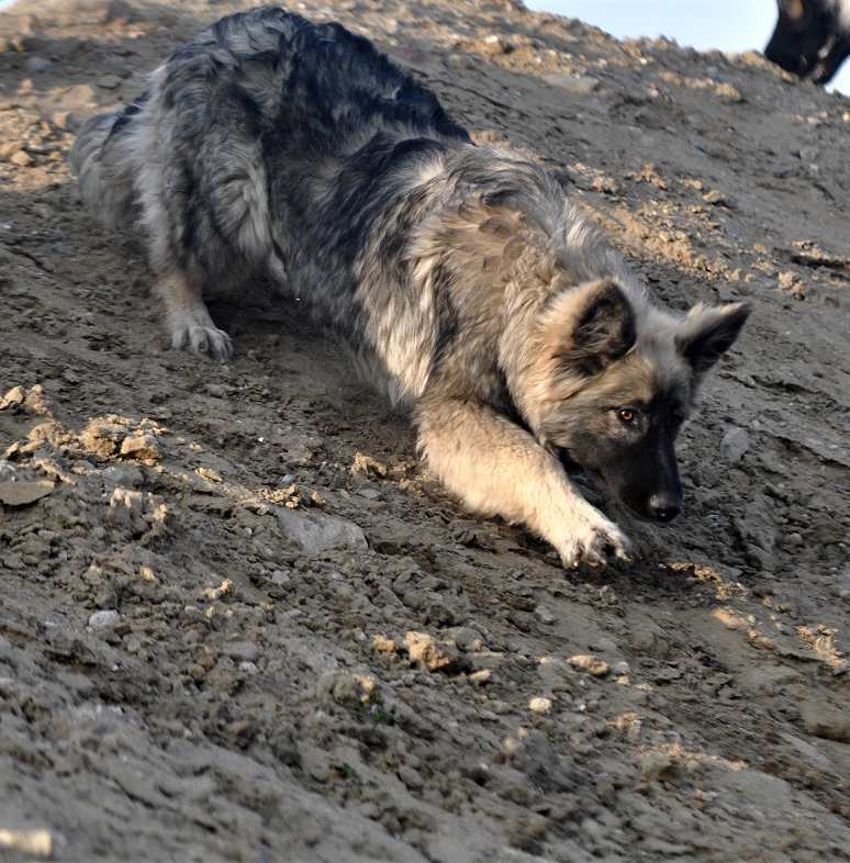 Crash ein Hund mit einer wie ich finde besonderen Note. Sie ist nun (auf den Fotos) 9 Monate alt, sie ist ungewöhnlich groß für ihr Alter und zudem ist sie wildfarben. Im Schatten und in der Sonne sieht sie sehr unterschiedlich aus, sie hat viele "gelbe" Anteile in ihrem Fell. Vom Wesen ist genauso ungewöhnlich wie ihr Fell Schattierungen aufweist. Crash brauchte ich nicht zu erziehen, sie "funktioniert" von ganz alleine, sie ist die "Schlichterin" des Rudels. Kann es überhaupt nicht haben wenn sich irgendwer zankt. Bei den Welpen von ihrer Mutter Chakana, ist sie regelmäßig zwischen die kleinen Streithähne und hat diese mit vorsichtigem Schieben ihres Kopfes auseinander gebracht. Wenn das nicht reichte hat sie, wenn sie sich gar nicht mehr zu helfen wusste, einfach einen Fuß auf den Welpen gestellt und diesen am Boden festgehalten, danach wurde sich "entschuldigt" indem sie den Welpen von oben bis unten gewaschen hat. Ich habe wirklich schon viel erlebt, aber solch ein Verhalten von einer so jungen Hündin ist mir auch noch nicht untergekommen.