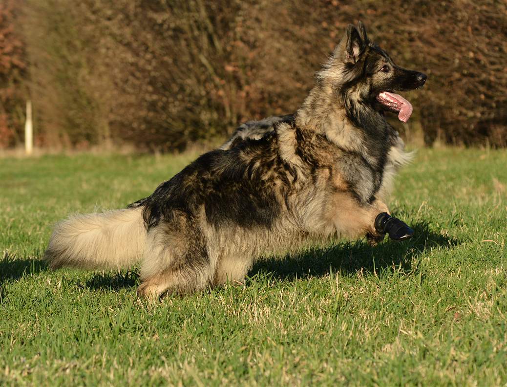 Mit einem Wort gesagt, wenn sie langsam läuft humpelt sie ein wenig, dreht das Bein ein bisschen nach außen. Und das ist alles!!! Rennen kann sie wie der Teufel, Spaß hat sie uneingeschränkt, Bordsteinkanten und Treppen üben findet sie schlichtweg doof, macht es aber, mit einem gelangweilten Gesichtausdruck mit. Sie kann auf dem dem ihr volles Gewicht tragen, das sieht man deutlich auf den Fotos... Alles in allem Ich bin mehr als zufrieden, und Crash.... ist eben Crash.. so wie sie immer war.