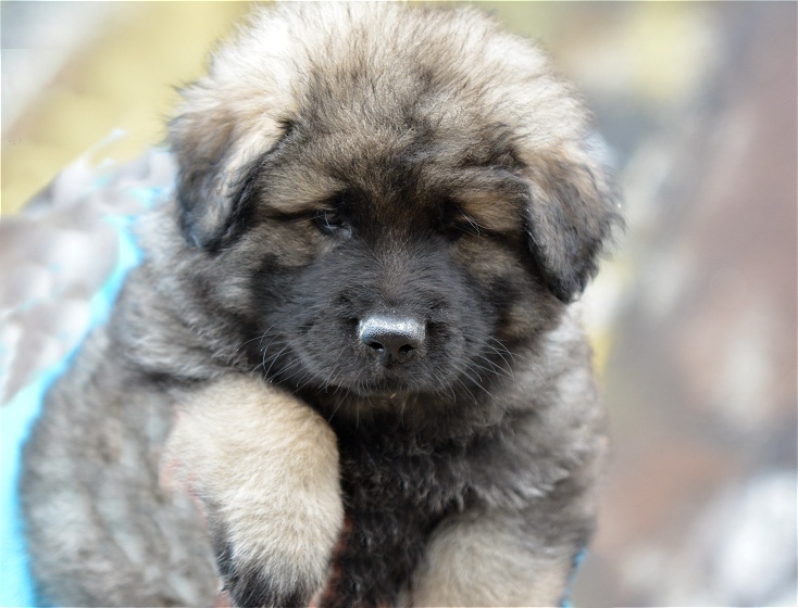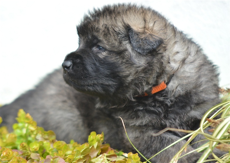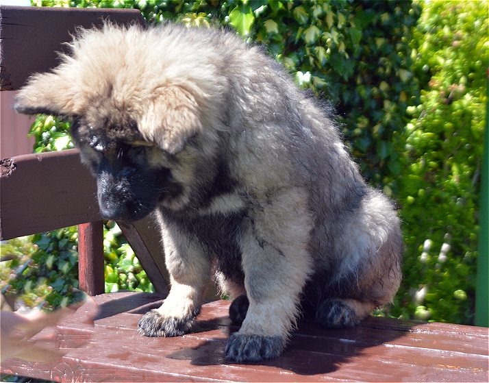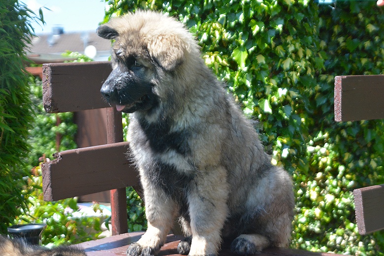 Er ist sehr groß, hat einen riesigen Kopf und für sein Alter bereits sehr gutes Fell.