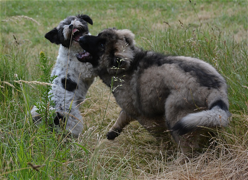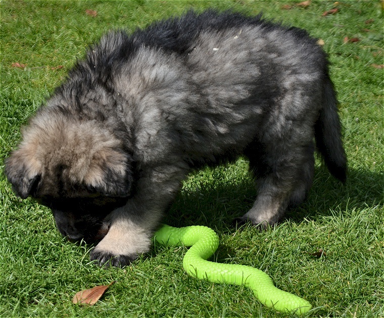 Bisher wehren ihn alle erwachsenen Hunde nur ab. Aber.... das wird sich ändern.