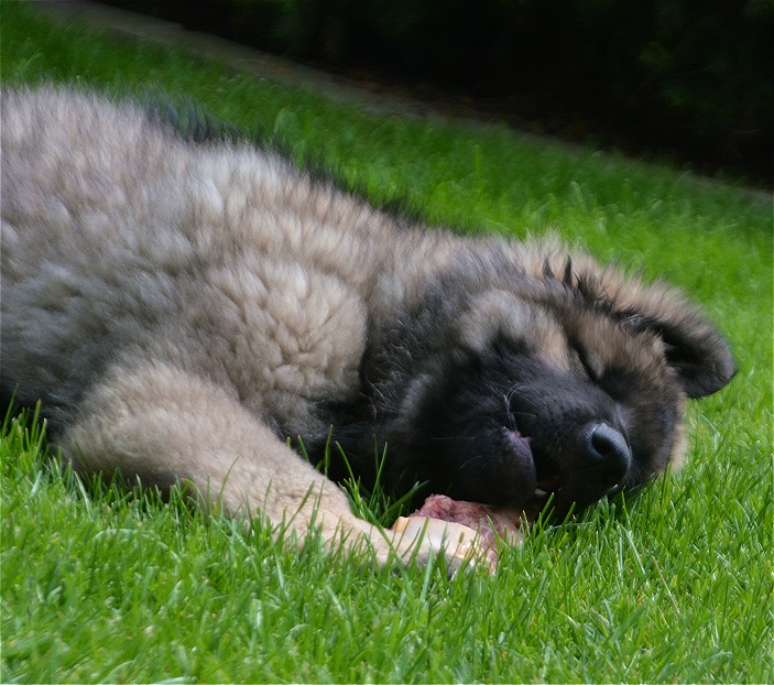 Das ist Diego wie er bei seiner Lieblingsspeise... Knochen mit viel Fleisch, eigentlich