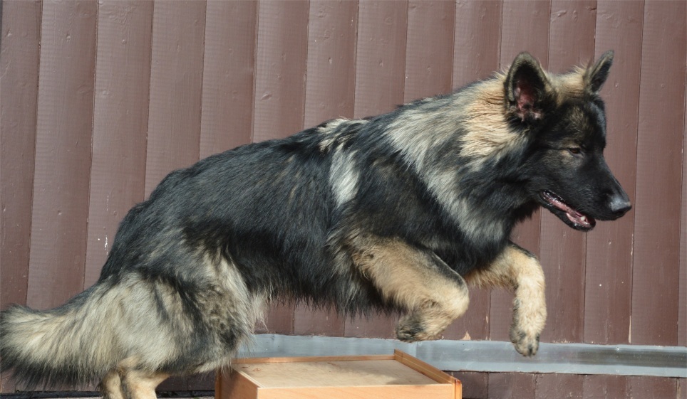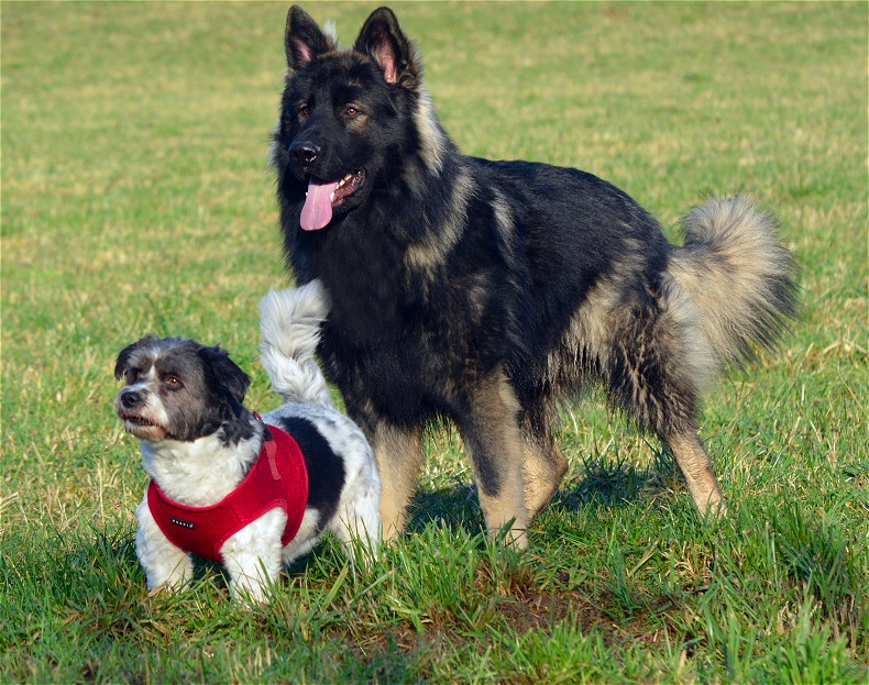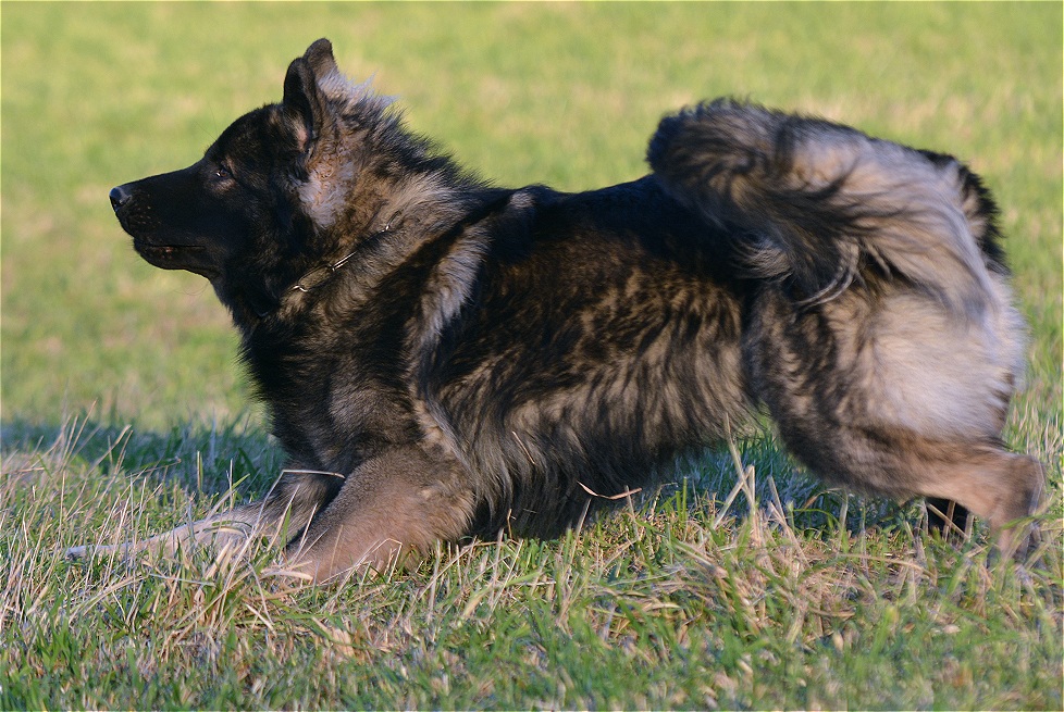 Er ist groß und sehr stämmig für sein Alter. Seine anfängliche Aversion gegen andere Hunde
