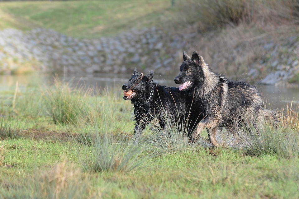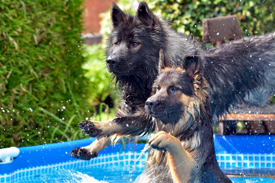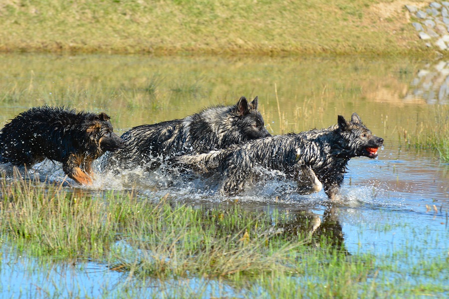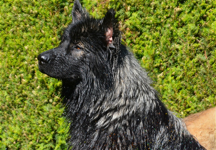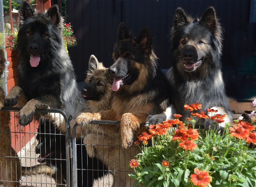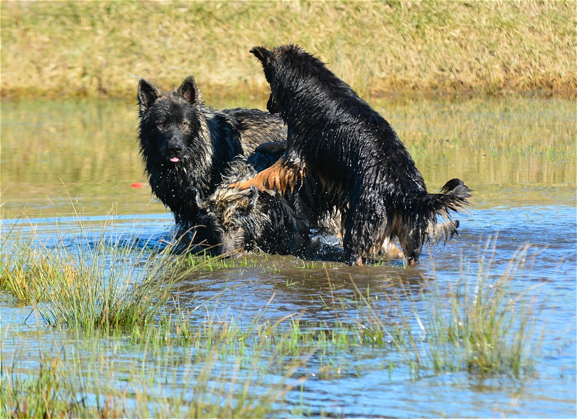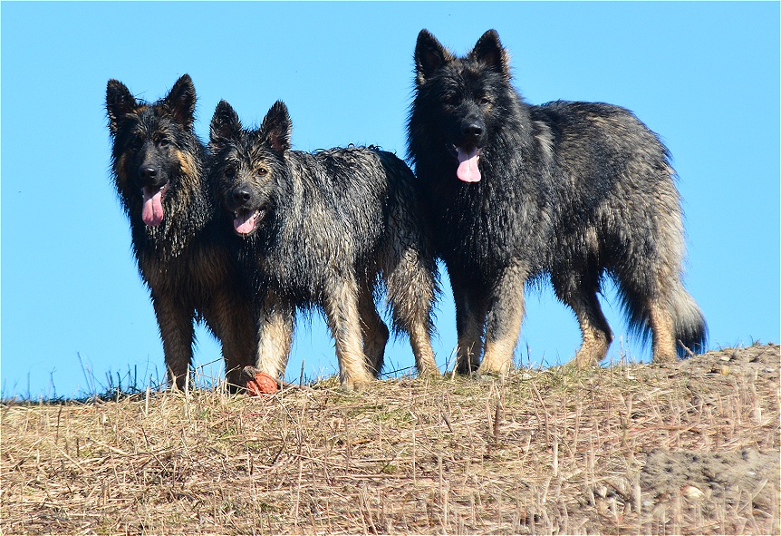 megaheiße Tage oder die Hunde haben zusammen beschlossen wir brauchen kein Pullover, ein "Top" reicht völlig? Keine Ahnung, aber alle haben nun ihre Jacke ausgezogen, so nackige Schäferhunde hatte ich wirklich noch in keinem Sommer. Jay sieht aus wie komplett kurzhaarig, Die anderen haben hier und da noch ein paar längere Strippen hängen und sehen ansonsten irgendwie Mottenzerfressen aus.? Wasser ist das Gebot des Tages und der neue Pool ist schon zuhauf eingeweiht. Diego ist optisch wirklich ein richtig schöne Hund geworden. Er ist noch sehr jung und ich bin wirklich sehr gespannt wie er sich weiterentwickelt. Er wiegt jetzt bereits 47 Kilo. Ist dabei nicht übermäßig groß, aber sehr kraft und gehaltvoll. Er ist Gewichts und größenmäßig mehr als sein Vater Nazar. Nur Haare ... die haben sie zur Zeit alle nicht! Dafür Spaß .....und das ganze Jungvolk tobt ausgelassen durch den Garten. |