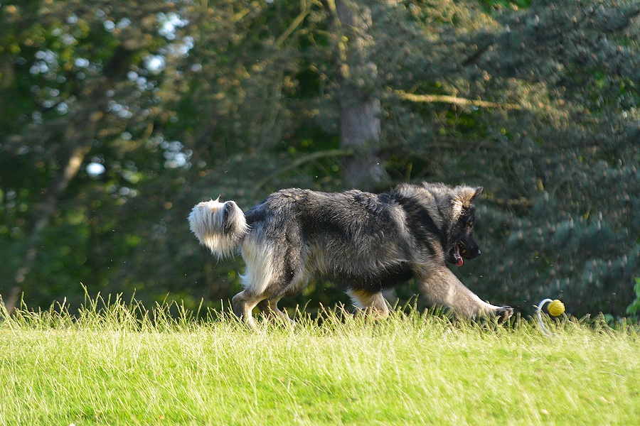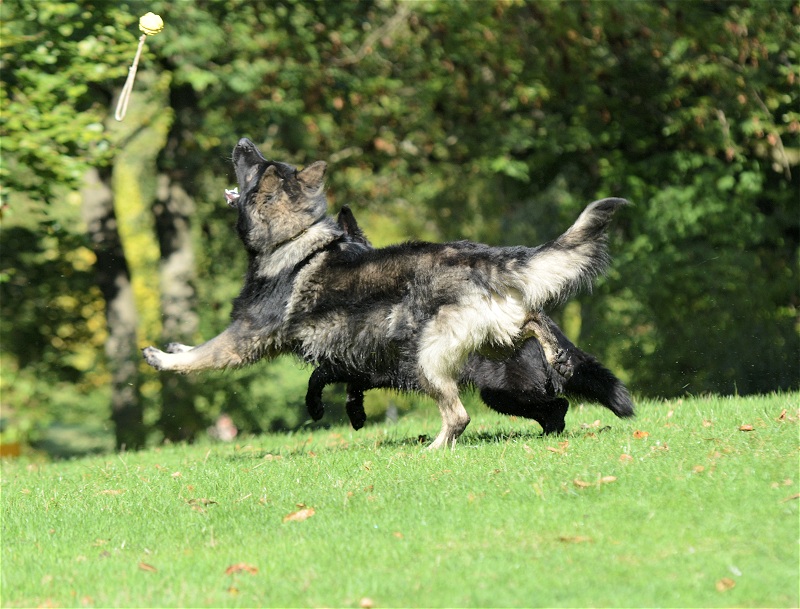 ![]() Ball spielen hat er natürlich auch gelernt. Man muss nur die Bilder ansehen um festzustellen das er gerne mit den anderen um die Wette rennt. |