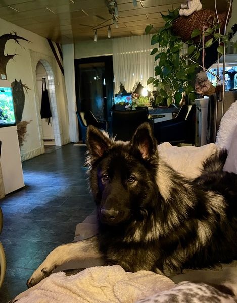 ![]() Er ist ein dunkler silberner Hund mit einer guten Ausstrahlung. Ich bin echt gespannt wie er sich 3jährig darstellen wird.? |