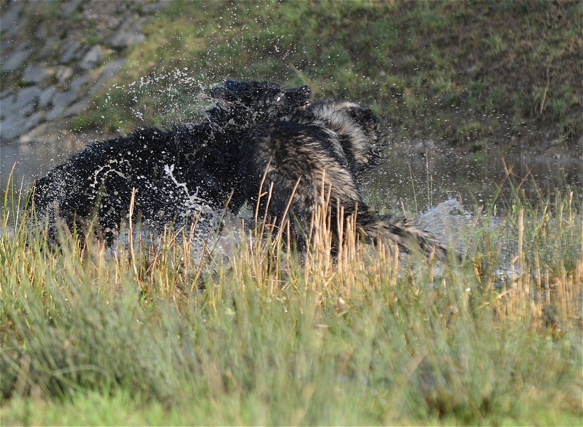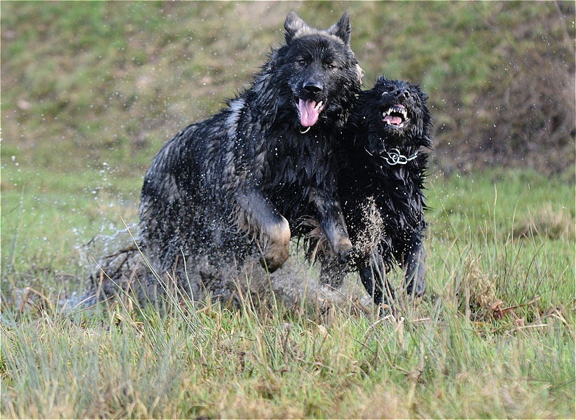 ![]() Überall ist Matsche und viel Wasser, und die beiden Powerpakete haben einen Riesenspaß durch das Wasser zu rennen. Diego rempelt Lexa immer aufs übelste an. Das "Pupertier" wähnt sich so einmal in der Woche stark genug um das zu wagen. Und jedes Mal endet es gleich .... |