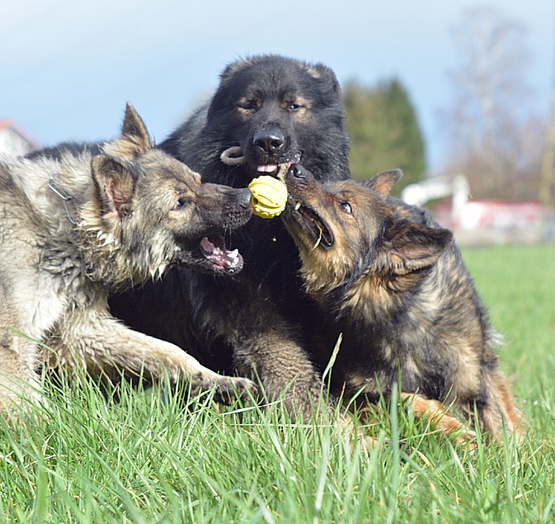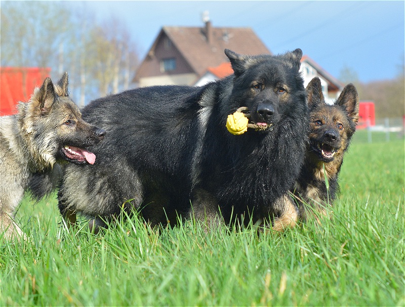 beeindruckender schwerer und kompakter Hund. Schon lange habe ich einen solchen imposanten Rüden nicht mehr gesehen. Er erstaunt mich jeden Tag aufs neue. Er hat einen riesigen Kopf, eine breite Brust und wiegt mit noch nicht mal 2 Jahren 50 Kilo Dabei ist er schnell, temperamentvoll, und äußerst lernwillig. Natürlich besteht er nicht nur aus guten Seiten. Er mag sich nicht mehr von anderen Hunden schräg anmachen lassen. Dann muss ich schon mal 2x was sagen, und er ist dann zwar nicht unbedingt meiner Meinung, gehorcht aber. Er ist manchmal grob im rempeln mit den Mädels, lässt da schon mal den Jungspundmacho raushängen. Auch da haben wir noch ein wenig Diskussionsbedarf miteinenader. Ich meine er muss die Mädels nicht nicht mitten im Lauf mit einem Bodycheck zu Fall bringen nur weil er das kann :-) Aber dieser Hund ist nach wie vor meine rechte Hand, er gibt mir alles was ich von ihm geholt haben möchte. Egal ob er mir meine Schuhe oder meine Tasche, Leine .....eben egal was ich möchte, er holt es und bringt es mir mit nicht endender Begeisterung. Draußen begleitet er mich, dicht rechts neben meinem E mobil ohne Wenn und Aber. Wenn er dann mein OK bekommt, rennt er breit grinsend und nur von der Freude am Laufen begleitet über jede Wiese die wir unterwegs passieren. Das macht unglaublichen Spaß ihm dabei zuzusehen. Ich werde irgendwann mal von meinem Unfall erzählen und dann vielleicht auch mal Videos zeigen was Diego alles für mich tut. Aber dazu brauche ich noch etwas Zeit. |