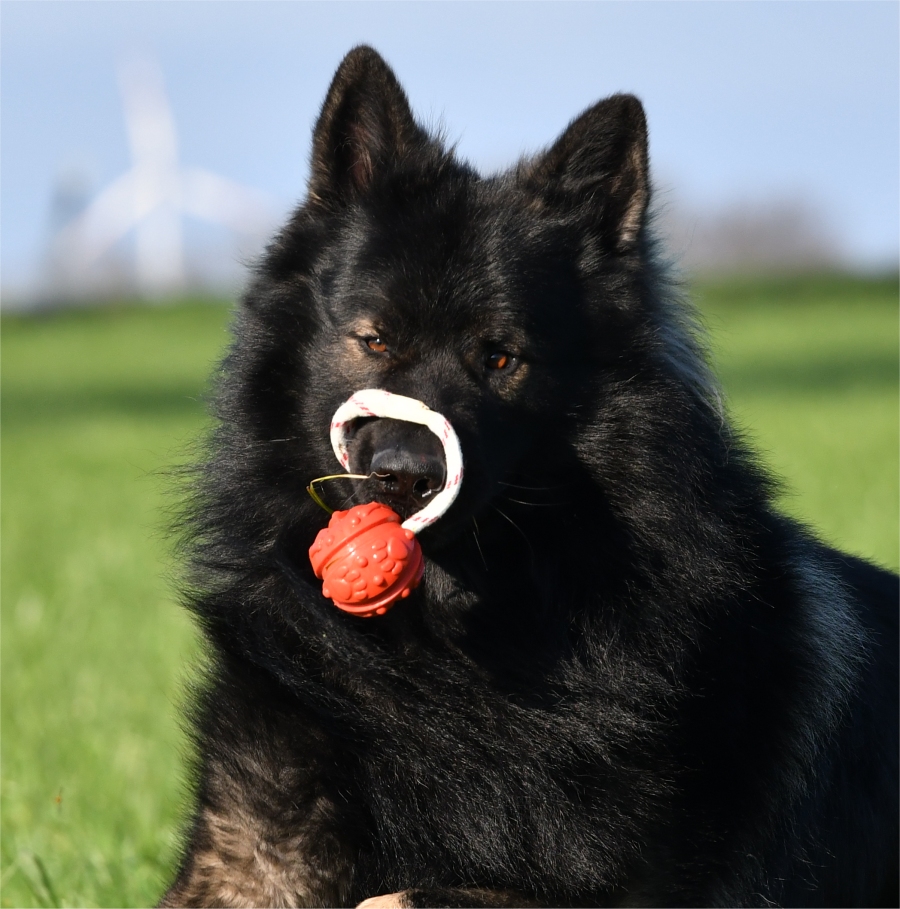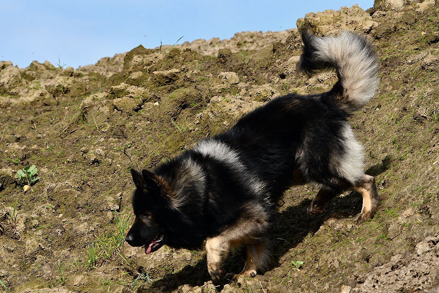 ![]() Mit seinem Rudel und mit ihm bekannten Hunden ist er rüpelig aber nicht übermäßig frech. |