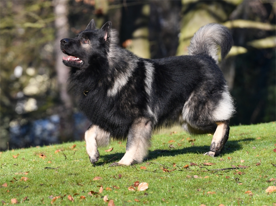 | Diego im Januar im Matschwetter. Jetzt ist er ein *Großer* ! Absolut sicher im Umgang, gehorsam und überheblich Artgenossen gegenüber. Andere Hunde muss er nicht haben, akzeptiert aber, wenn auch äußerst mürrisch, wenn ich ihm sage der/die geht heute mit spazieren. Er passt auf mich auf, ist immer an meiner Seite, außer wenn es zum Ball spielen geht und er mit den Mädels um die Wette rennen darf. Er ist ein mächtiger, großer Hund mit viel Substanz geworden, und .....er ist ein Service Hund, der mir alles bringt was ich ihm sage. Sein großer Kopf ist eigentlich ein wenig eigenwillig, aber nicht mehr wenn er mir die Brille vom Tisch holen soll. *Telefon* ist sein Lieblings*befehl* heißt es doch, er muss es suchen und das egal wo es sich gerade befindet. Oben, unten, draußen im Garten oder im Keller. Egal wo, er sucht es und er kommt nicht wieder ohne das er es ( natürlich irgendwo gut versteckt) gefunden hat. Es spielt gar keine Rolle ob es im Blumenbeet liegt, oder unter einer Decke im Kratzbaum der Katzen. Da wird kurzerhand die Decke runtergerissen, sich das Telefon geschnappt und freudestrahlend zu Frauchen gebracht. Er ist ein absoluter verlässlicher Hund. Abends im dunkeln bewacht er, solange sich Menschen normal bewegen passiert nichts, aber wenn ein Mensch sich mir zu sehr nähert und dann noch *komisch* stehenbleibt .. dann steht er vor mir und knurrt laut hörbar. Sobald dieser Mensch aber ein Stück zurückweicht ist das für ihn wieder in Ordnung. Er kann mega viele Sachen, kann rechts, kann links kann näher ran, kann zurückgehen. Sich auf Distanz hinsetzen, hinlegen oder auf Anzeige *touch machen. Das heißt... egal wo ich hinzeige, dort geht er hin und stellt die Vorderhand darauf, oder aber wenn es groß genug ist, spring er darauf und wartet dort dann. Er kann *Hinter gehen, kann dort nach rechts oder links wechseln. Auf Handzeichen Sitz, Platz ,Steh ,genauso wie auch dieselben Sachen mit Hörzeichen. Er ist ein gut ausgebildeter Hund, der auch optisch mit seinem dunklen Silbernen Fell einiges hermacht. Diego ist immer noch keine 4 Jahre alt, aber er ist ein unglaublich starker und sicherer Hundemann geworden. |