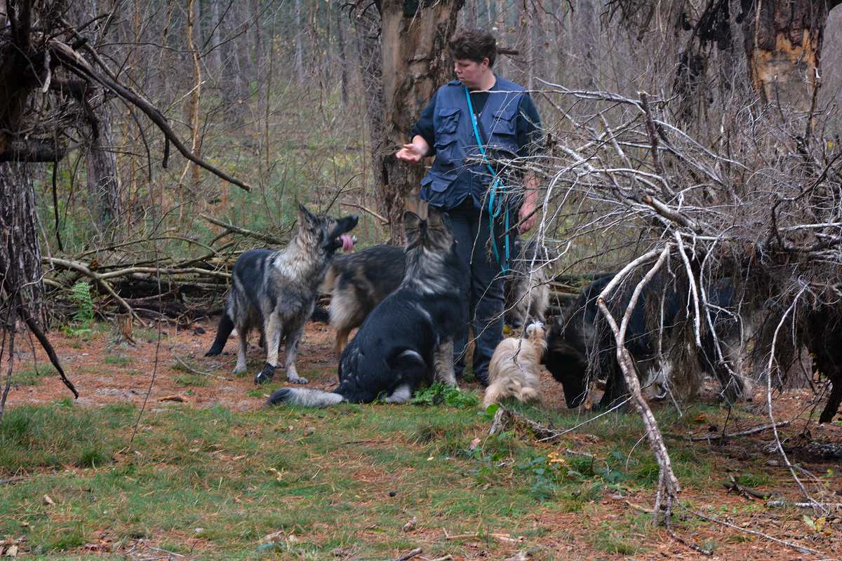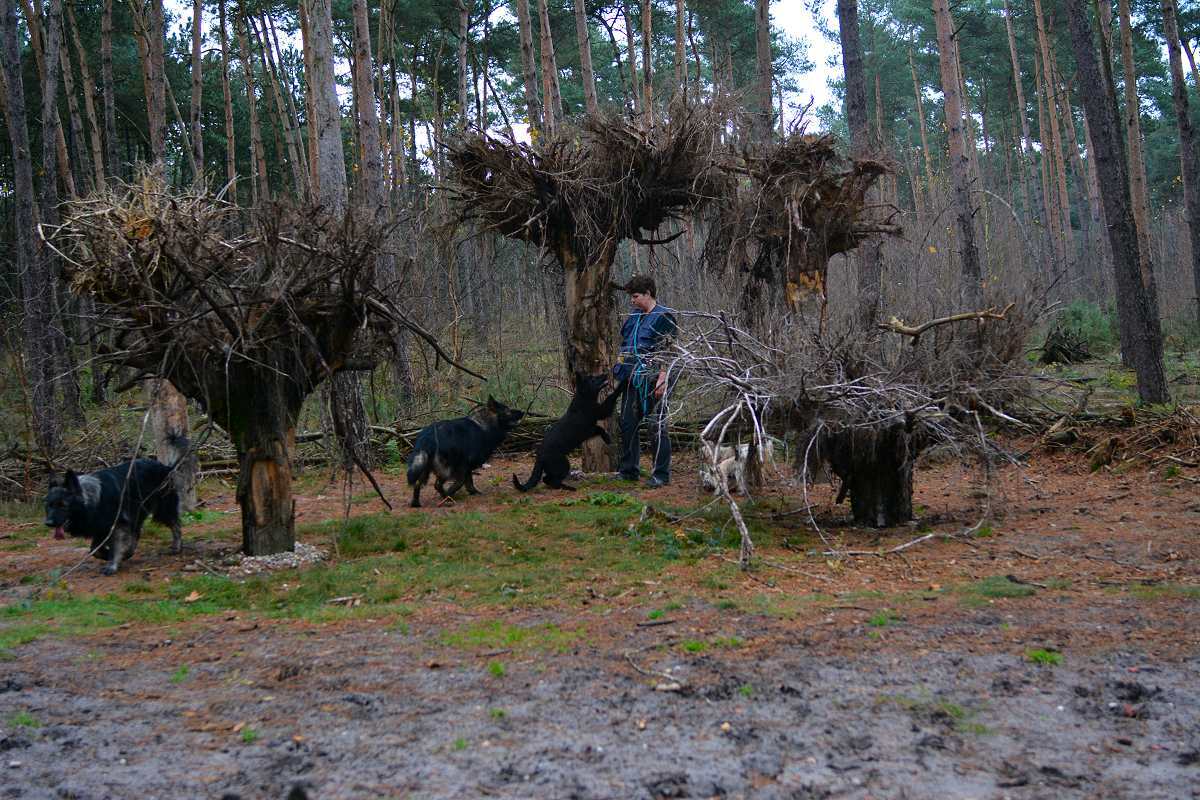 Es gibt auch Stellen, wo der Weg tiefer liegt als der Wald, oft springen die Hunde dann dort hoch und hüpfen über die Baumstämme die dort liegen. Zudem kommen die vielen tiefen Furchen, die die Wildschweine dort machen, auch noch erschwerend zum tragen.