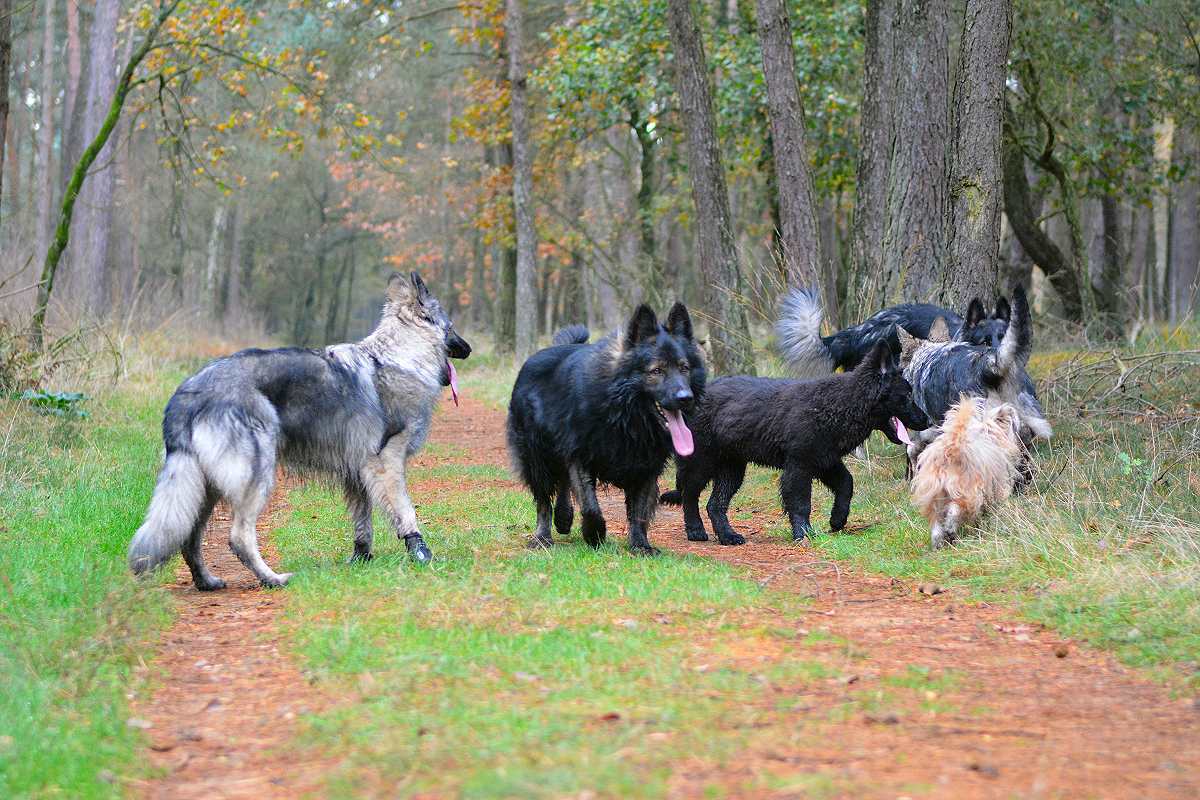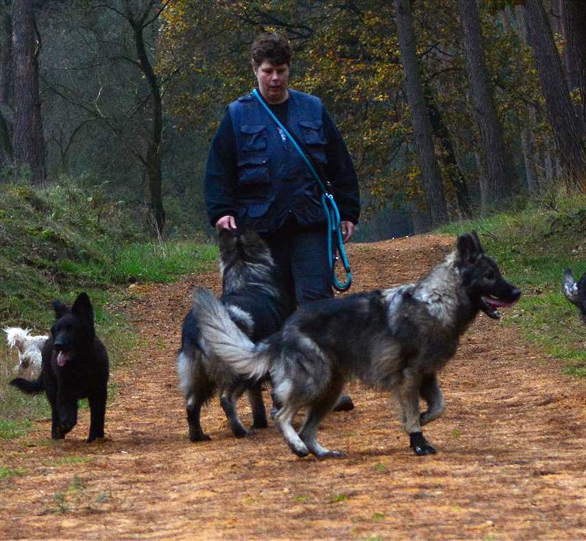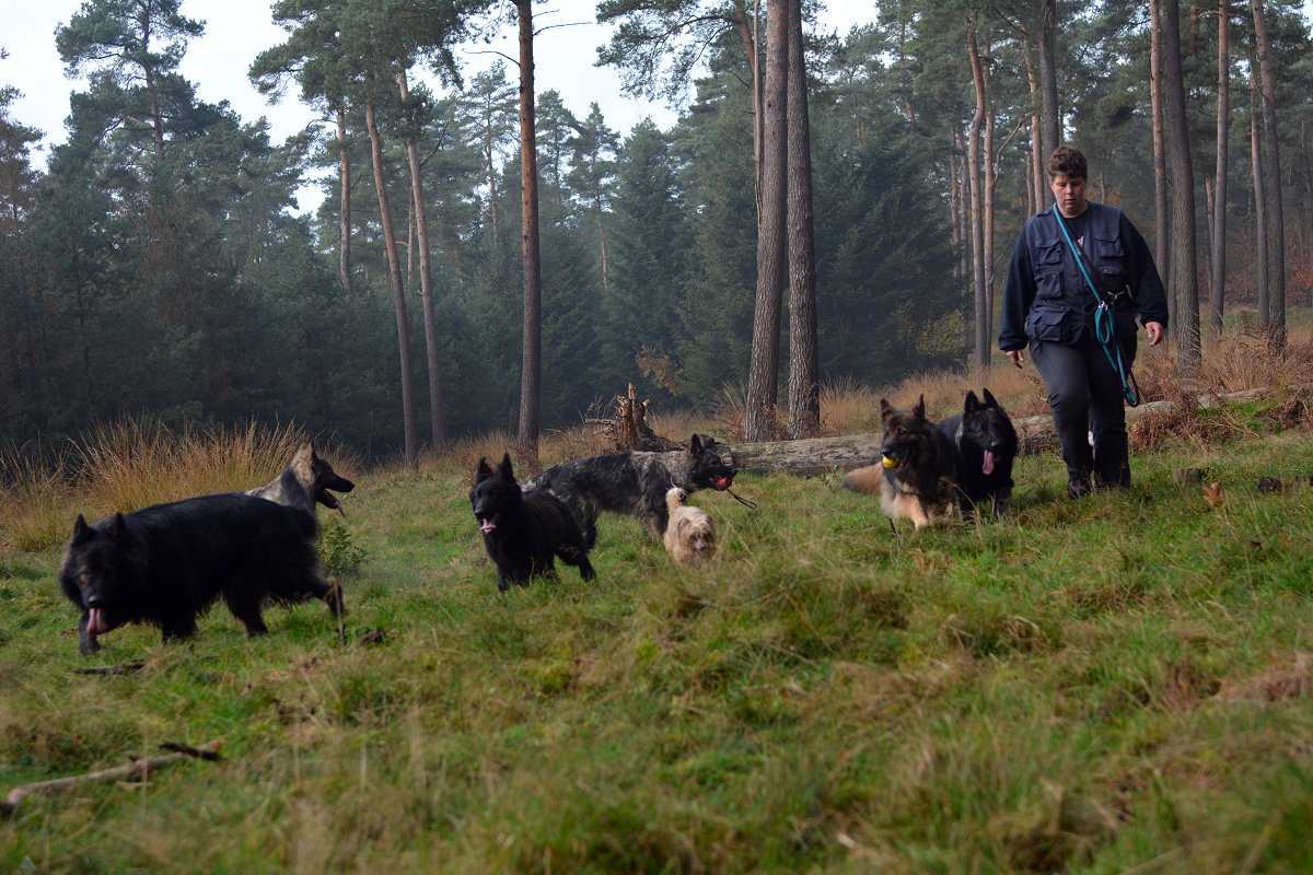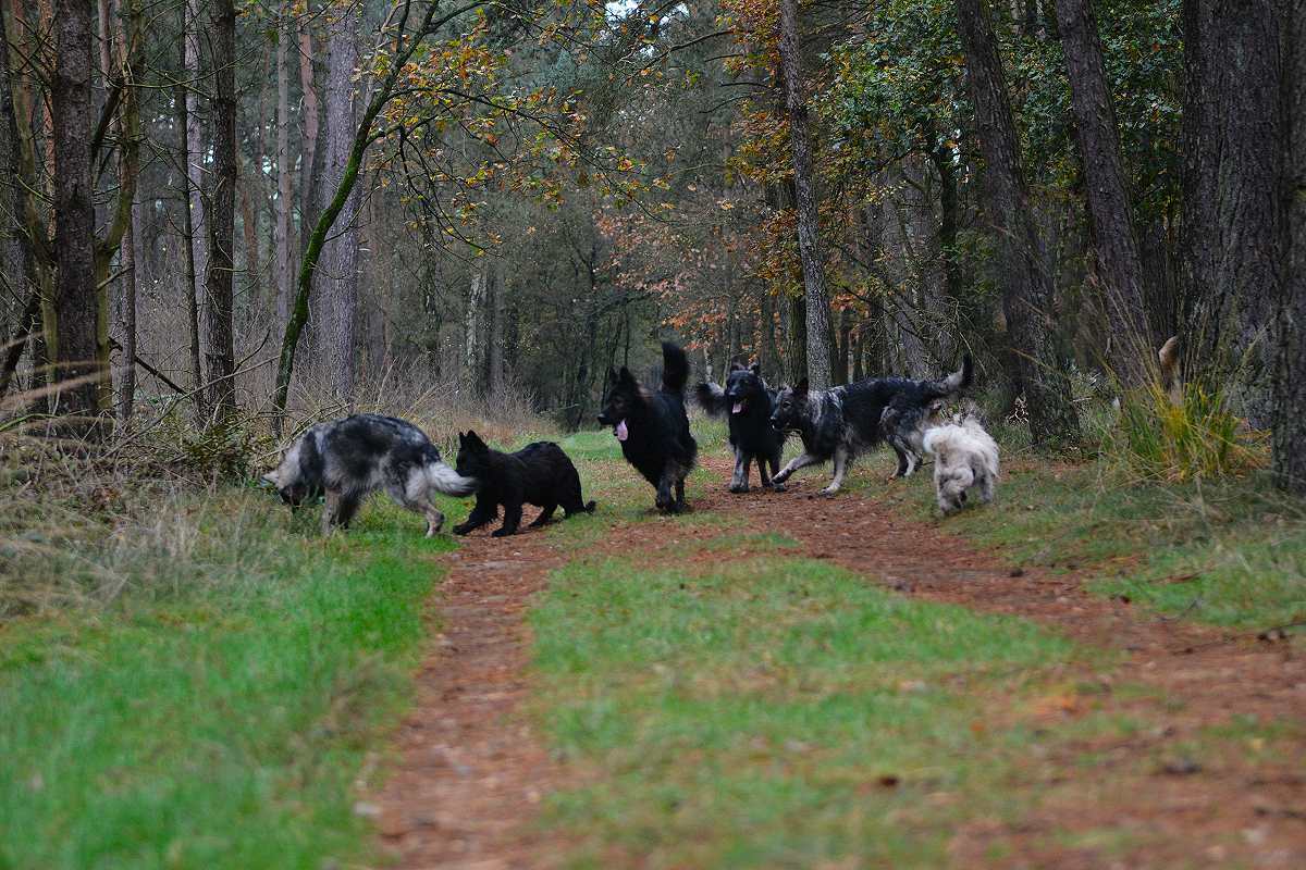 Gut, das Wetter war bedeckt, aber das macht den Hunden ja mal nichts, für uns ist Sonne zwar schöner, aber Anfang November darf es auch mal diesig sein. Crash merkte längst das was im Busch ist und sprang eh schon wie eine wilde im Garten und um das Auto rum. Ihr Blick sagte alles, sie war wirklich wild entschlossen, sich dieses mal nicht wieder abwimmeln zu lassen. Also.... Crash kam mit, ein bisschen mulmig war mir ja schon. Als wir ankamen, konnten wir Crash gar nicht bändigen, schon auf den ersten metern raste sie den Berg rauf und wieder runter, umrundete alle Hunde um sie anzustiften ihr zu folgen, sie sprang in den Wald und kam wieder zurück, rannte lachend und kreischend rauf und runter. Sandra und ich guckten uns nur an... Oh jeh... und wir waren gerade mal 50 mtr gelaufen. Und Crash powert so, oh jeh... noch seeehr weit bis wir wieder am Auto sind...