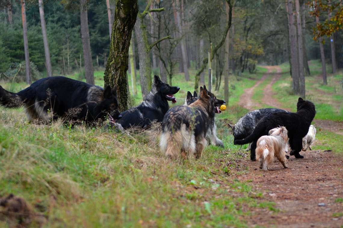 Sandra war mit und wir beide haben im Vorfeld besprochen, ob man es wagen kann, Crash auf eine solch lange und anstrengende Strecke mitzunehmen? Crash ist ja, zumindest theoretisch nicht so trainiert, sie hat zwar Lauftraining, und sie geht auch mit den anderen mit. Aber--- immer noch ein bisschen auf Schonung bedacht-- Und dieser Weg in Dorsten ist lang, Sand und unebenes Gelände wechseln sich ab, es geht bergauf und natürlich auch wieder bergab. Zudem rennen die Hunde ja das zwei- bis dreifache. und zwischendurch wird auch noch gespielt.