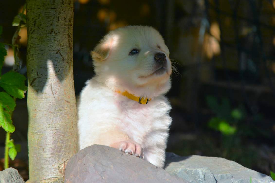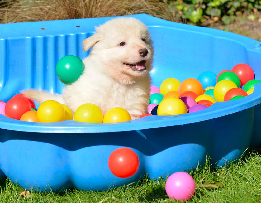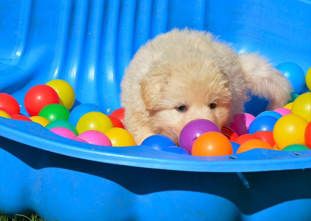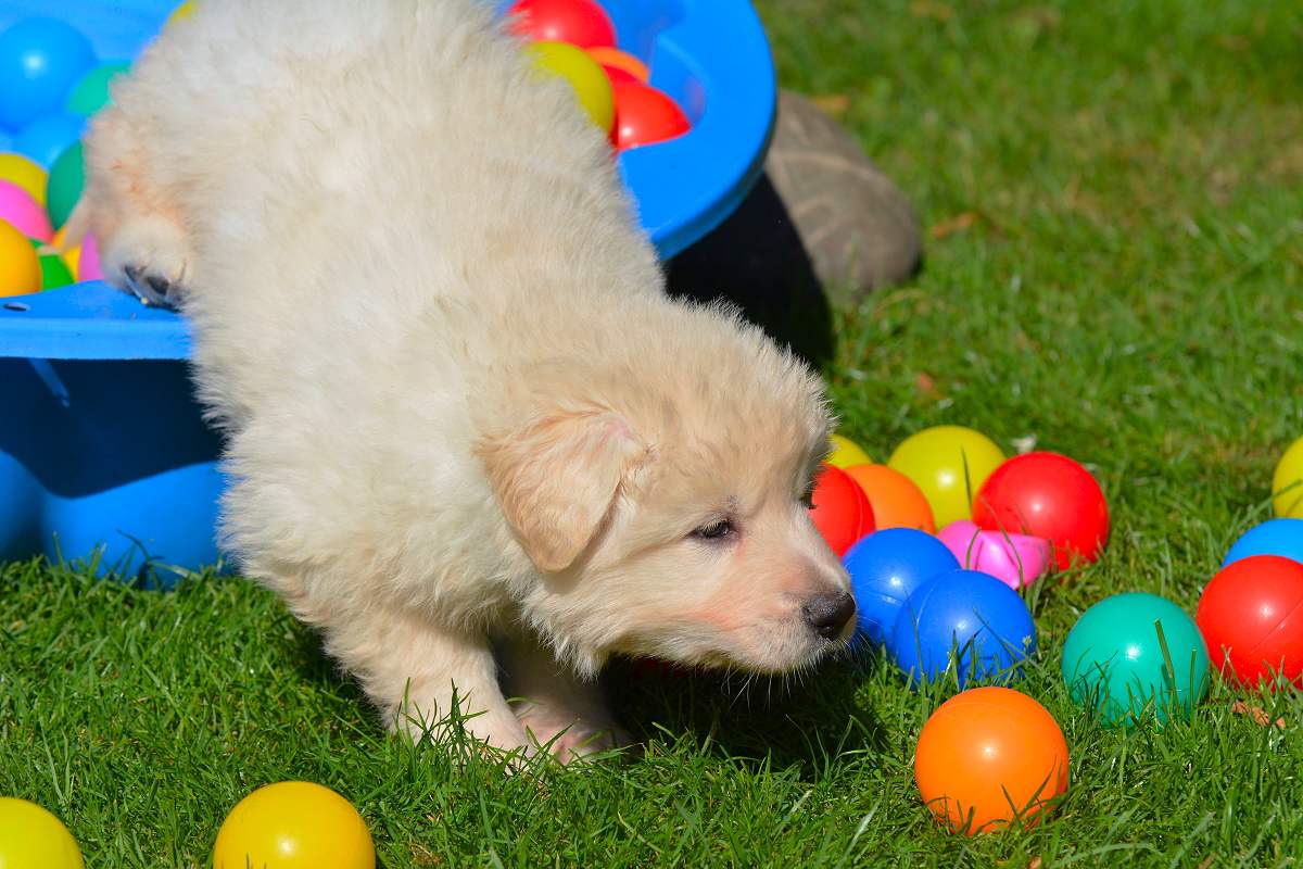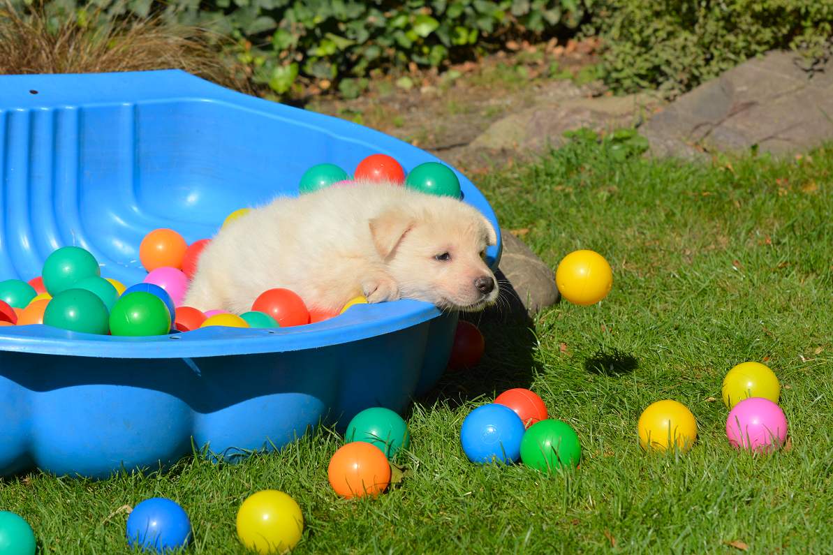 Lustig finde ich das fast immer die Namen die wir vergeben passend zu den Hunden sind. Summer Dream ist tatsächlich die so ziemlich gelbste Hündin im Wurf.. Summer eben.. wie der Sommer.. .-)
