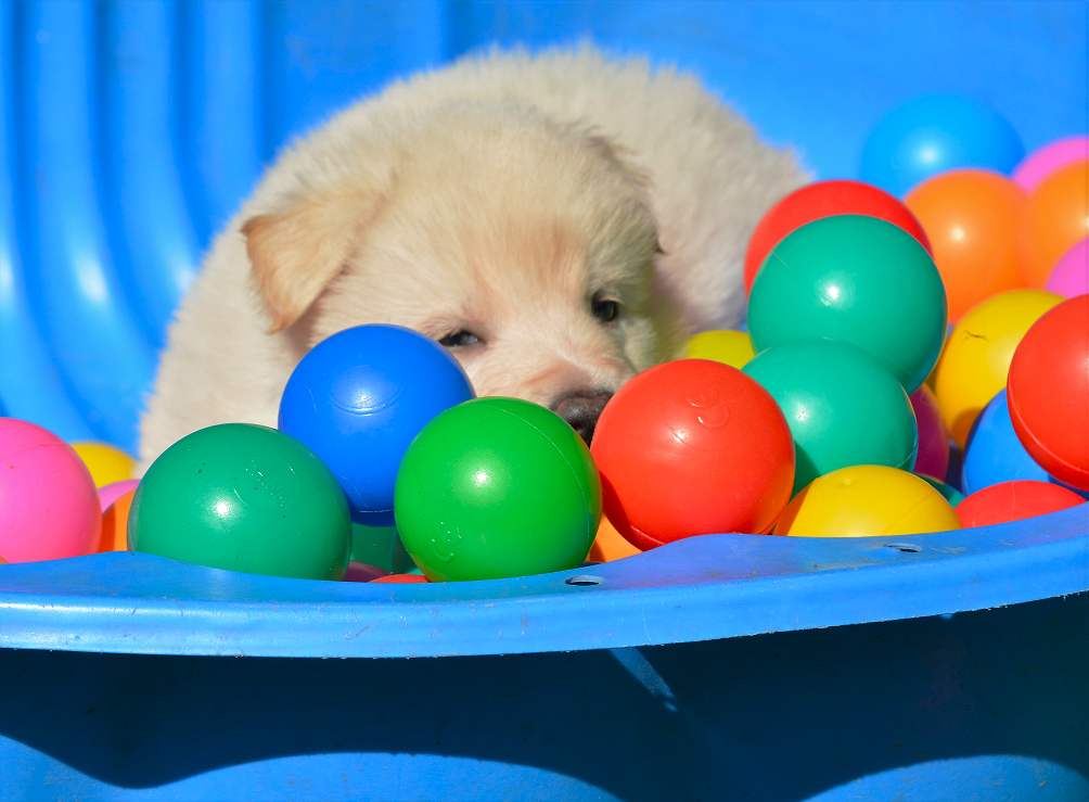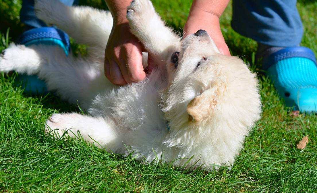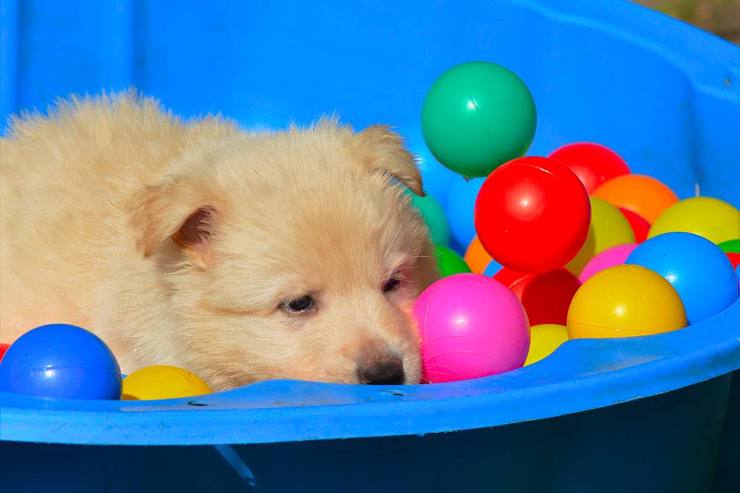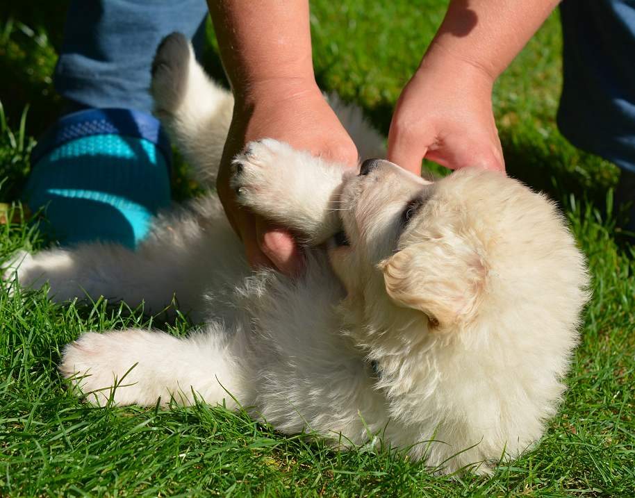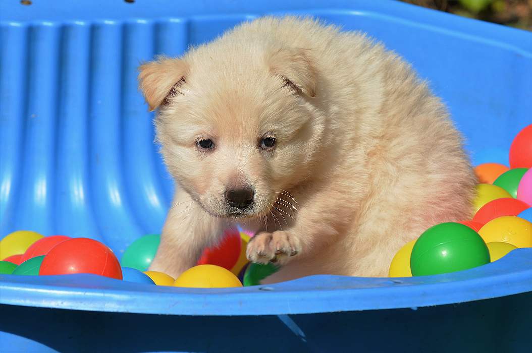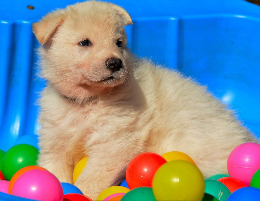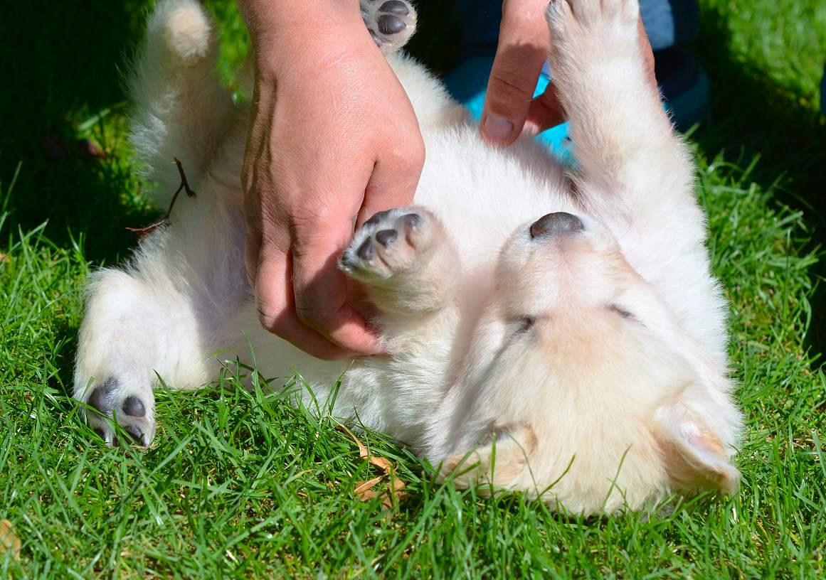 Lustig finde ich das fast immer die Namen die wir vergeben passend zu den Hunden sind. Summer Dream ist tatsächlich die so ziemlich gelbste Hündin im Wurf.. Summer eben.. wie der Sommer.. .-)