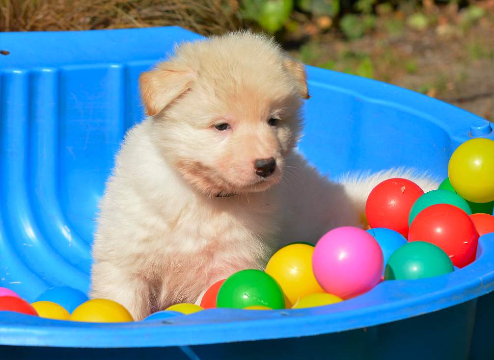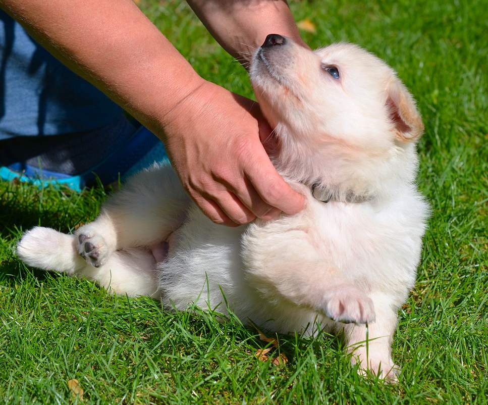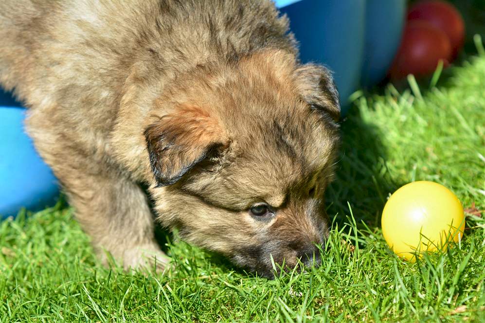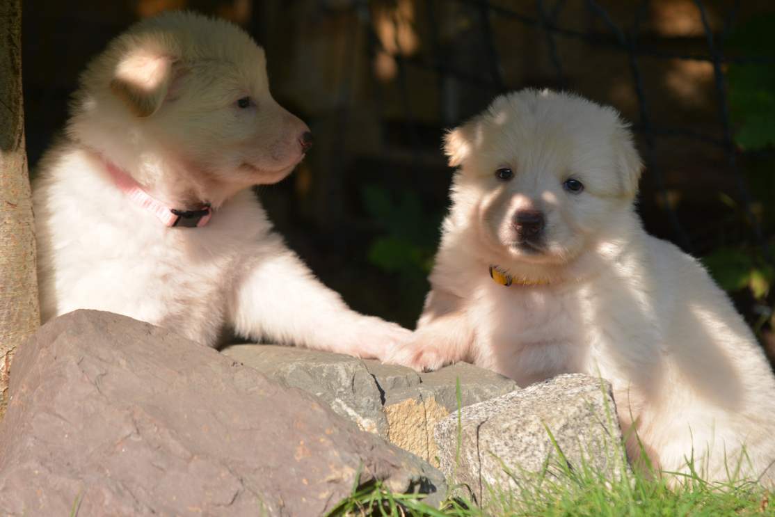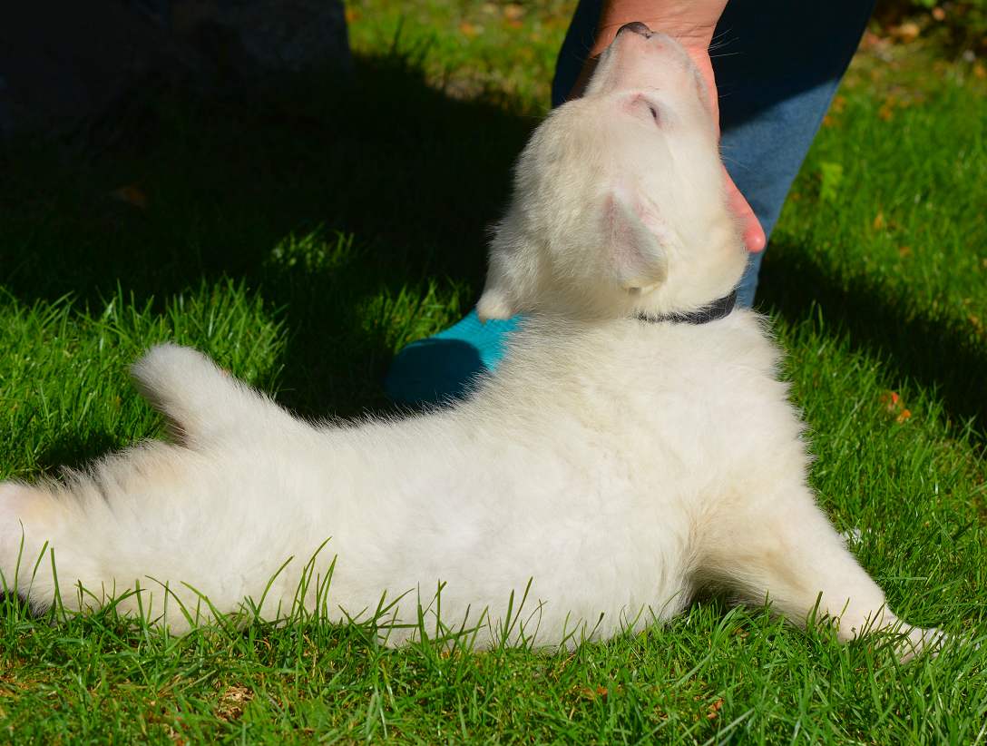 25.9 So... nun ist es das nächste mal, leider sind die Fotos schon wieder "alt" ich komme wirklich kaum hinterher. Die 11er sind ziemlich anstrengend und fordern viel Zeit. Auch Geduld und Beobachtungsgabe ist im Augenblick gefragt. Immer noch benennen wir die 11er mit ihren Halsbandfarben. Das hat sich irgendwie so eingespielt, so das die Charakteristik sich ebenfalls nicht auf den Hund an sich bezieht. Indem man die Namen nennt, hat man ja eine besondere und andere Beziehung zum einzelnen Individuum. Mit den Halsbandfarben ist etwas mehr Distanz (obwohl...Quatsch, aber so wird es in der Wissenschaft verkauft) Leider funktioniert das bei uns nicht so, hinter jeder Halsbandfarbe steckt ein eigenständiges kleines Wesen, und ich weiß genau welches, so das die Halsbänder inzwischen wie Namen für die Kleinen geworden sind. Blöd .... aber mal eben "anders" und "anders" und zudem auch noch außergewöhnlich sind diese Babys schließlich auch ...