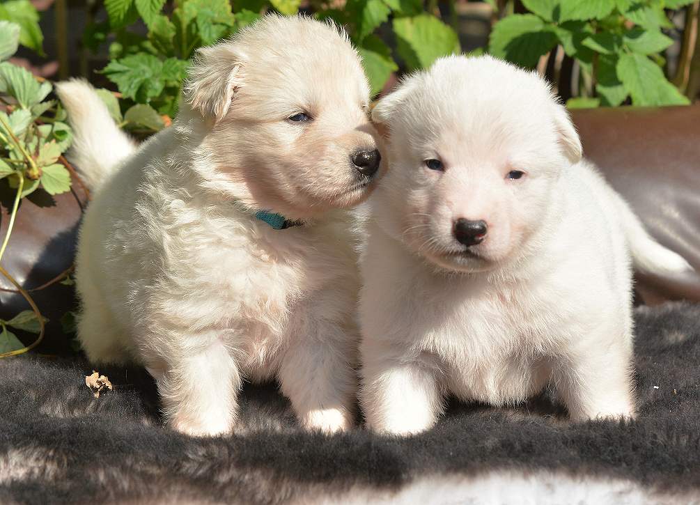 Sandokan`s Replay (links) und sein Bruder Snow Storm Aragon (rechts) Aragon scheint der einzige wirklich weiße in dem Wurf zu sein. ..Schwarz... Aragon ist ein wirklich schöner Hund, ließ sich aber gestern überhaupt nicht fotografieren. Seine Kooperation war nicht sehr kamerakompartibel :-)