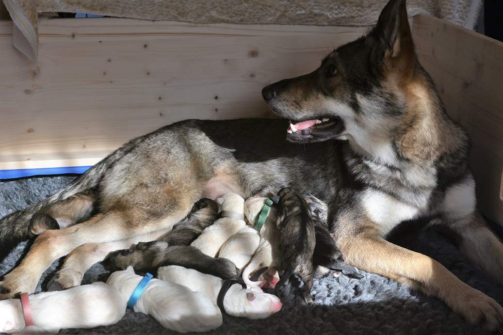 Es sei an dieser Stelle noch einmal betont das es sich bei Electra um einen reinen Schäferhund handelt, Sie ist mega verspielt, selbstbewusst und mit gutem Temperament ausgestattet. Eine ausführliche Beschreibung von Electra findet ihr unter Wolfsfarbe "Electra" Bei Interesse an einem der Welpen aus der Verbindung