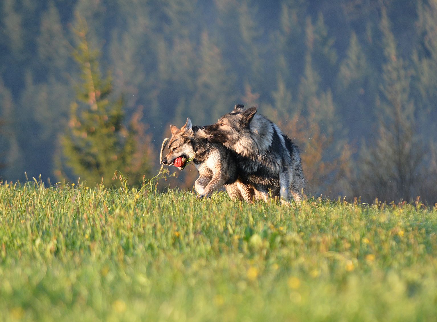 Nazar und Electra, die beiden sind immerzu unermüdlich im Wettstreit um den Ball. Nur ... Electra ist viel wendiger und schneller als mein Nazar. Und ärgern kann der sich :-)