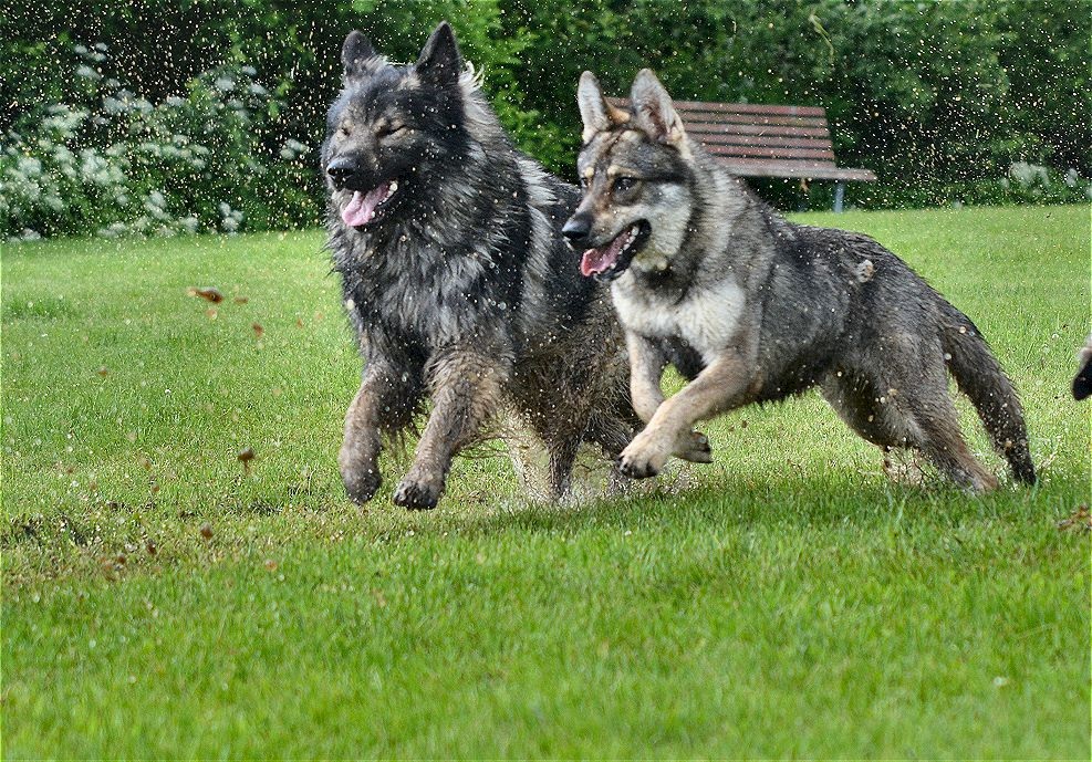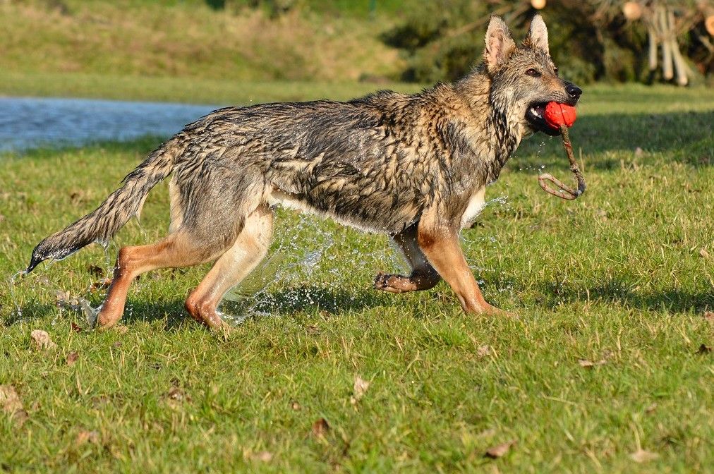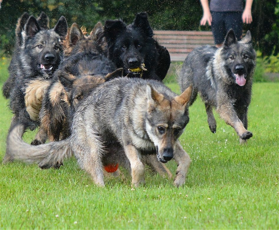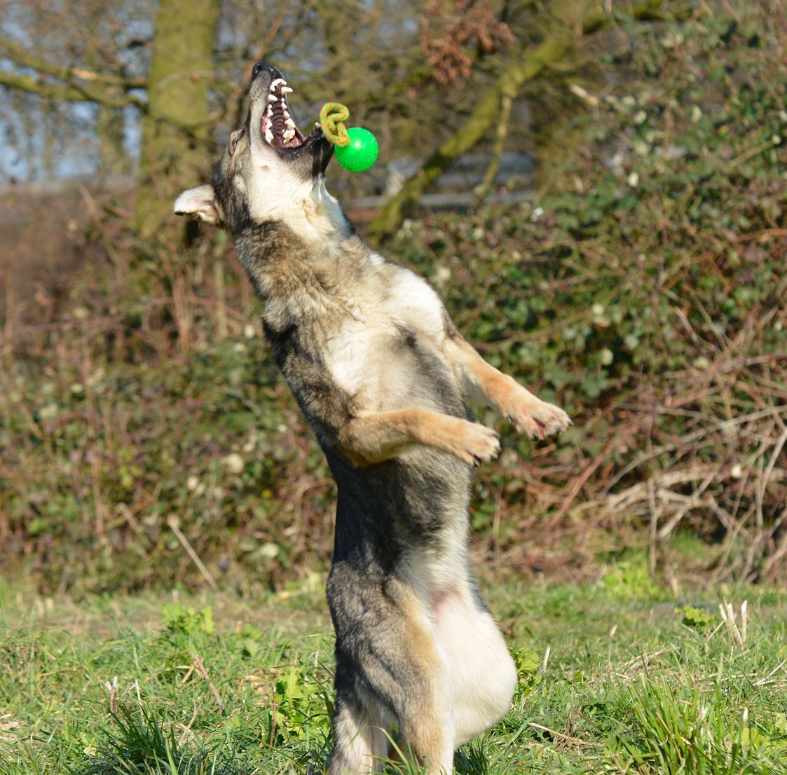Ich möchte hier noch einmal nachhaltig betonen das Electra ein Schäferhund ist und zwar ausnahmslos- Oder habt ihr schon mal einen Saarlos oder einen anderen, speziell wolfsähnlichen Hund so spielen sehen, wie Electra. Sie spielt mit allem was man ihr gibt, sie arbeitet auf dem Hundeplatz, sie apportiert jedweden Gegenstand, und vor allem... sie läuft immer ohne Leine und ohne Halsband. (Natürlich nicht an der Straße oder an Stellen die unübersichtlich sind) aber ansonsten ist sie wie meine anderen erzogen und kennt Leine und Halsband nur wenn es nicht zu umgehen ist... oder ein Zuggeschirr, das kennt sie natürlich auch, denn Trike ziehen, das macht mit ihr richtig Spaß-