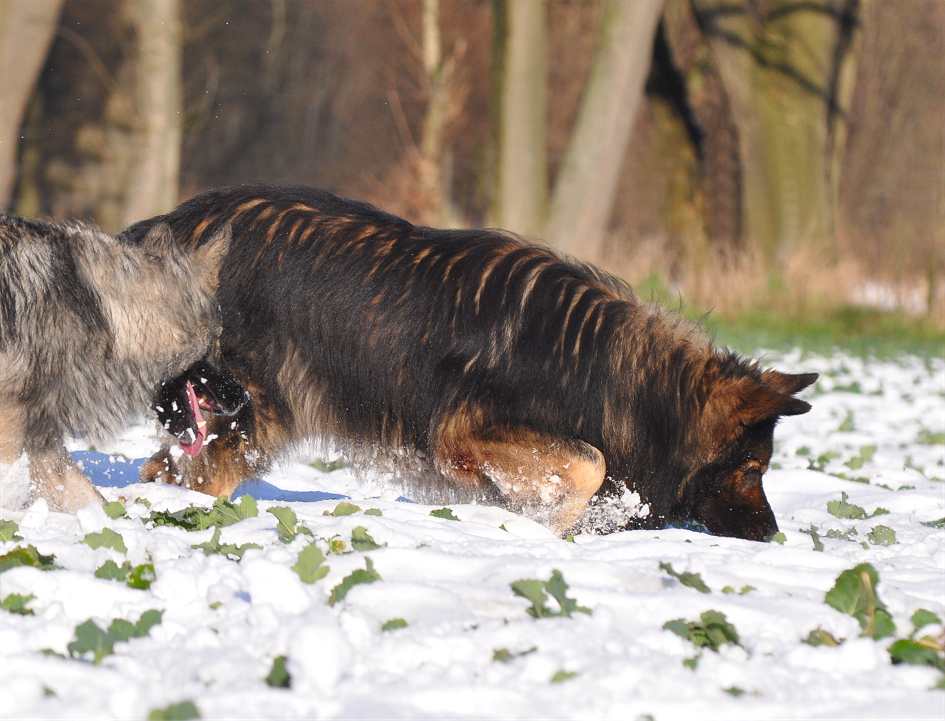 Diese Fotos sind nur unwesentlich später als die "Matschefotos" entstanden. Ich glaube es lag nur ein Tag dazwischen... Auch dieses mal, sind alle Hunde dabei, und wir waren im Wald und in den Feldern unterwegs. Die Hunde sind jetzt natürlich voll aufgehaart und wirken dementsprechend. Wotan ist außen vor, bedingt durch seine Medikamente und sein Alter kann er optisch natürlich nicht mehr mit den "Jungen" mithalten. Aber er ist dabei und er läuft mit Begeisterung mit, immer noch Chef der Truppe und ich wünsche euch viel Freude beim ansehen meiner Hundebande im Februar