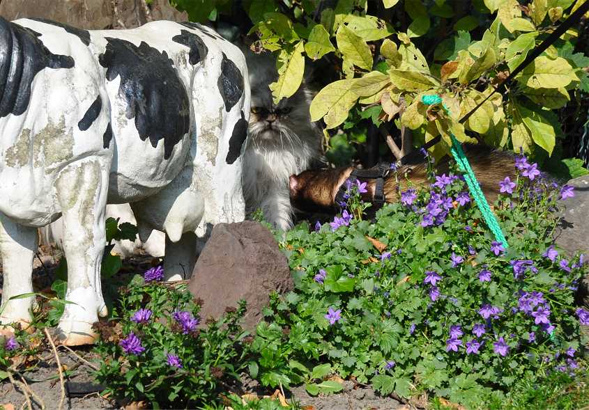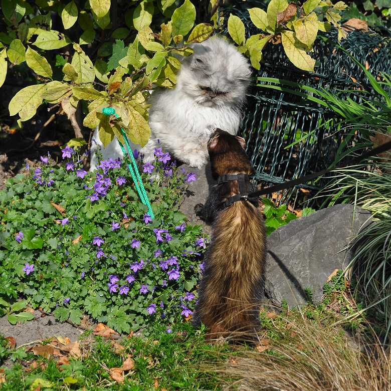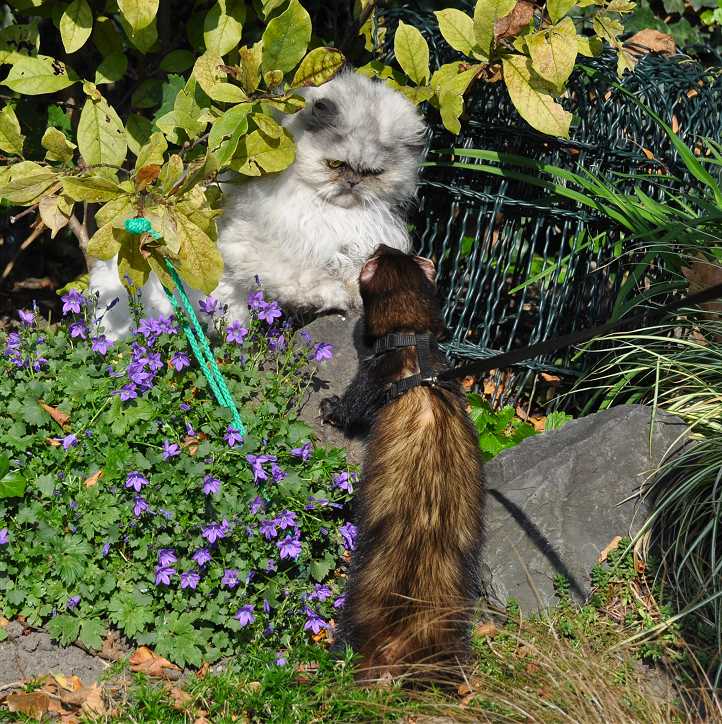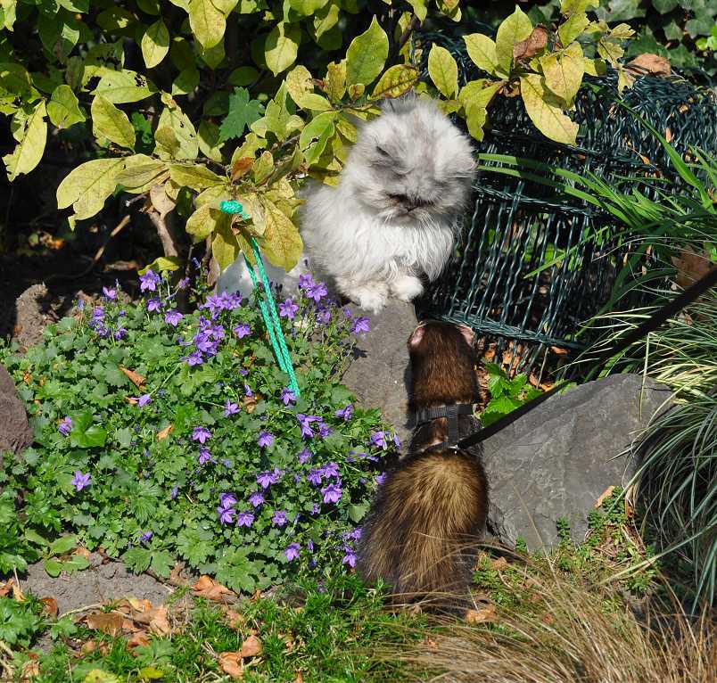 Dann traf er auf Shadow, meine sehr alte Perserkatze die Sonnenbaden mag.... Ich war gespannt!!!