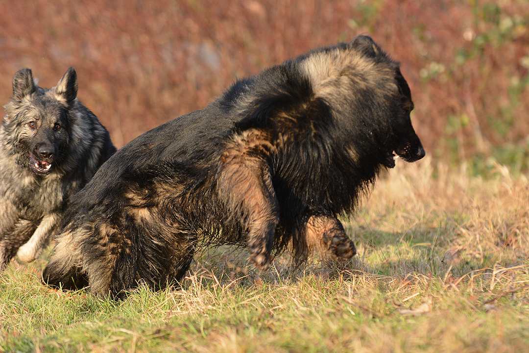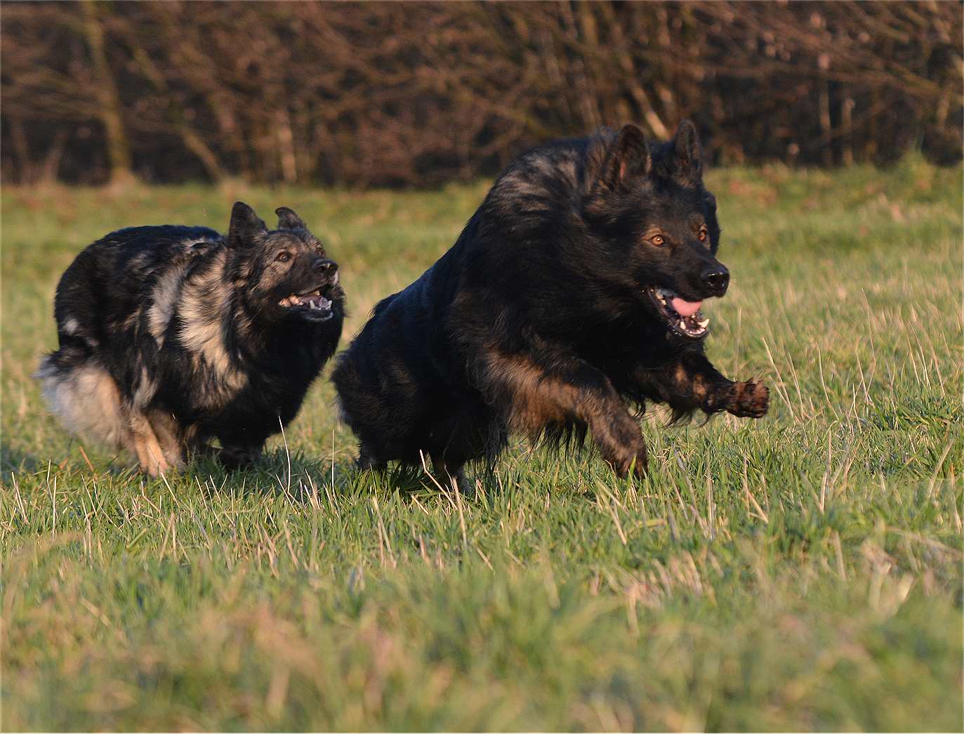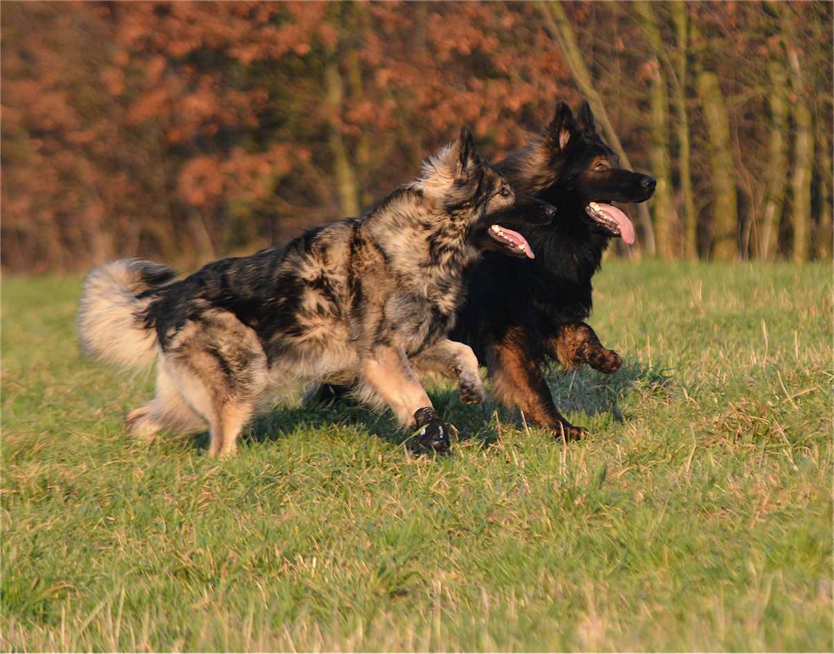 Grizzly vorne ..... Nazar versucht von hinten das Feld aufzurollen. Beide Rüden vertragen sich "noch" super...