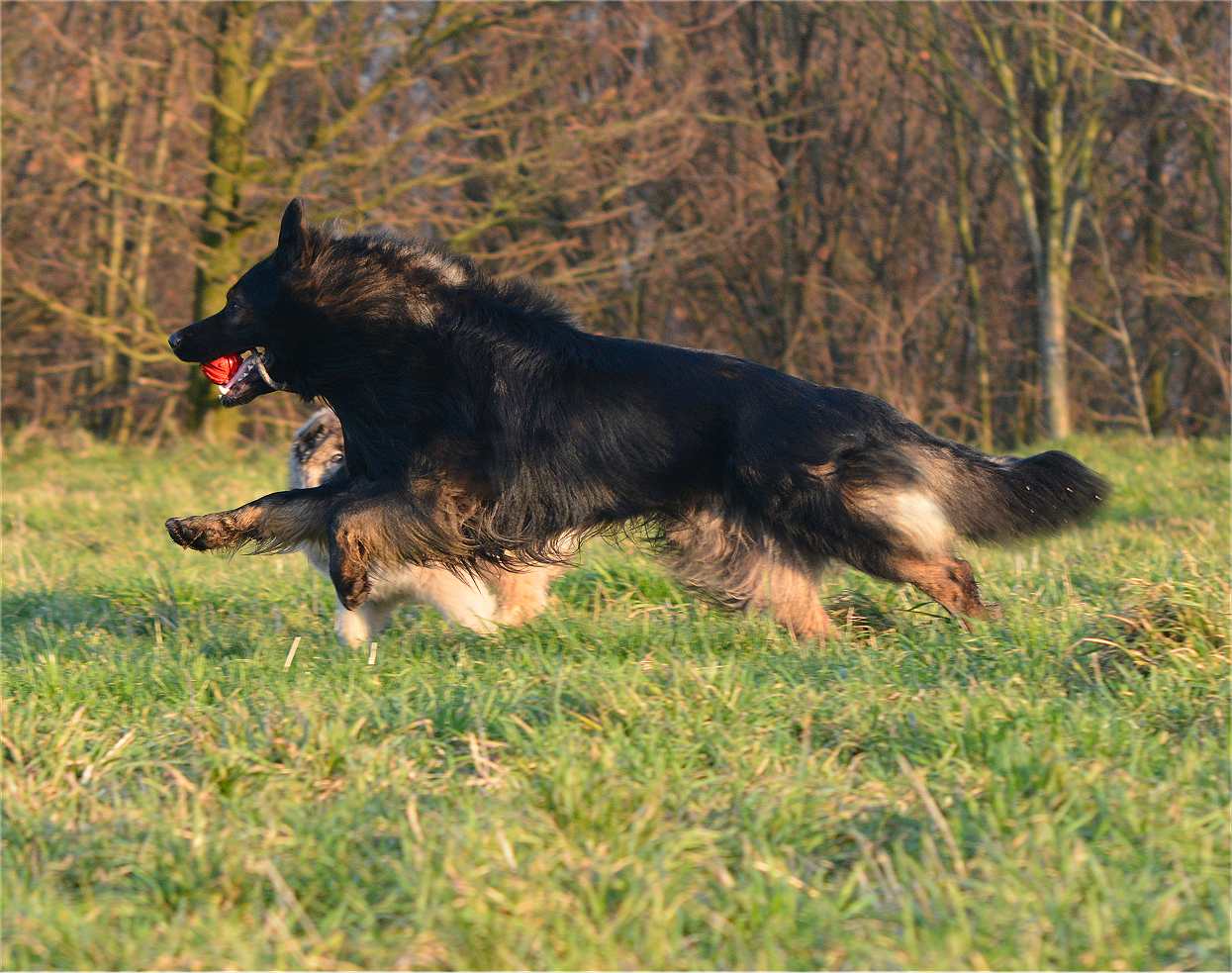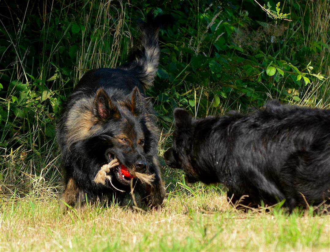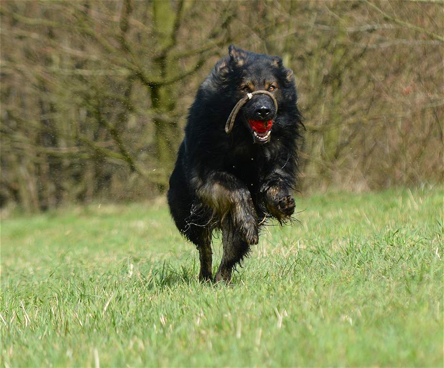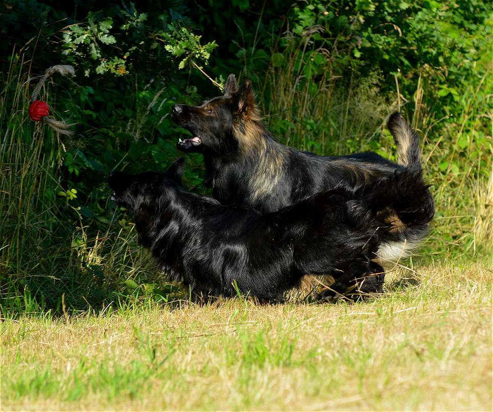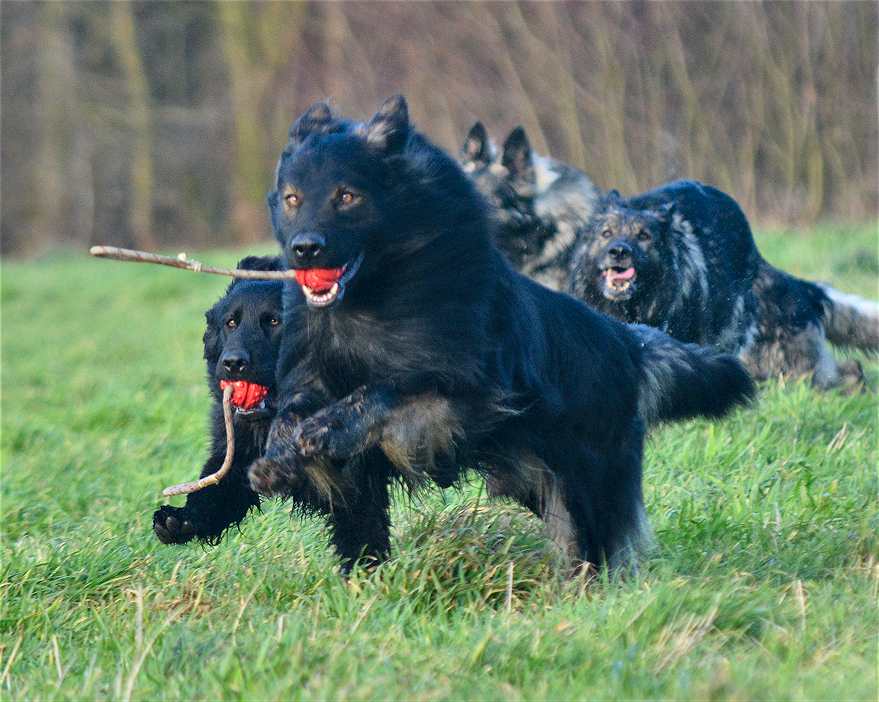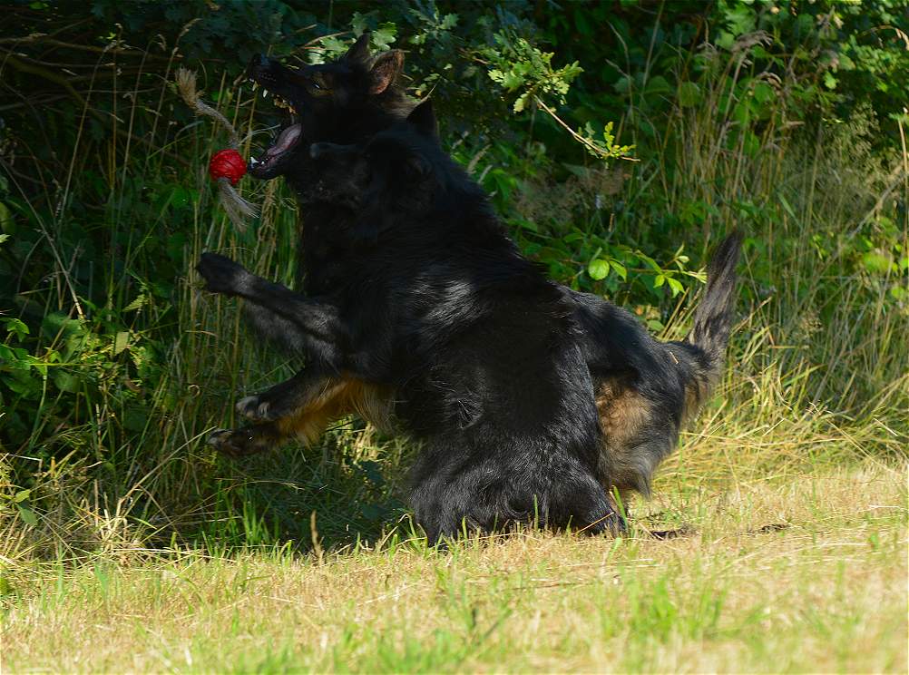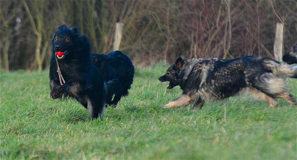 Aber mit allen zu laufen, im Wettstreit gegen die anderen zu rennen.. Das macht den Hunden am meisten Spaß, dabei gibt es keinen Streit, zwar ab und an lautstarkes "Geschrei" unter dem Motto.... ich war schneller, und erster am Ball .... aber keine Beißereien. Die anderen strengen sich das nächste mal einfach doppelt an, um schneller zu sein :-)