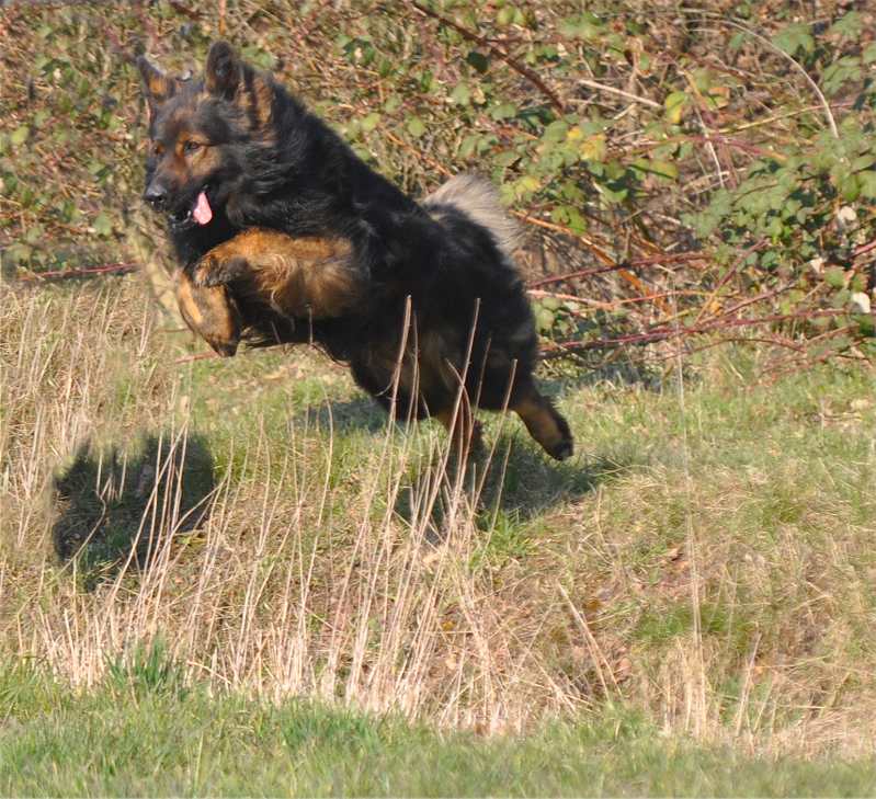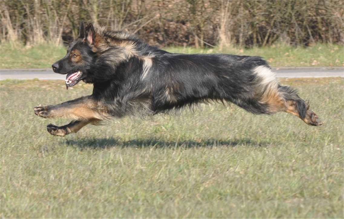 Kurzfristig erreicht er unglaubliche Schnelligkeit, gemessen haben wir das noch nicht aber irgendwann möchte ich wirklich mal wissen, wie schnell das in Km/h angaben ist.. Übrigens ist es wirklich selten, wenn ein Hund alle 4 Beine beim Laufen in der Luft hat in der Regel berührt mindestens ein Bein, immer den Boden