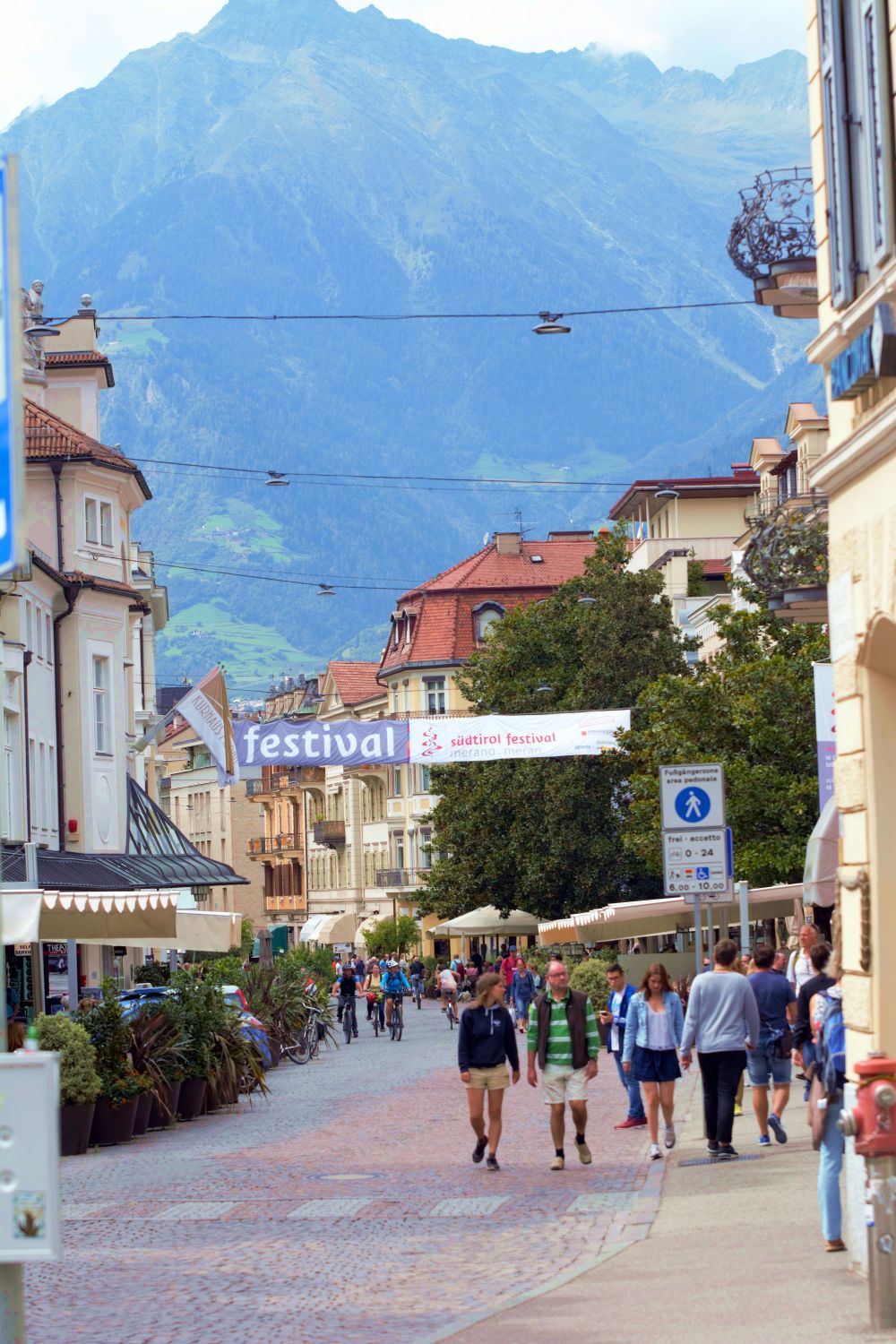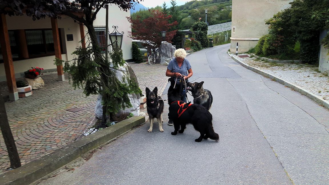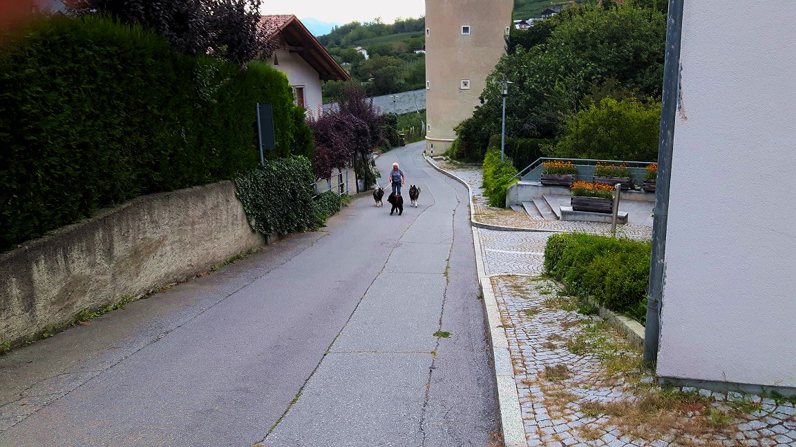 Auch das kommt nicht so rüber wie die Wirklichkeit, in Meran ist es deutlich wärmer als in den Tälern. Meran selber ist umgeben von Bergen, ganz rings herum. Auch in der Stadt sind Hunde keine Seltenheit und gerne gesehen. Wir haben uns dort den einen oder anderen Kaffee gegönnt und Rast gemacht.
