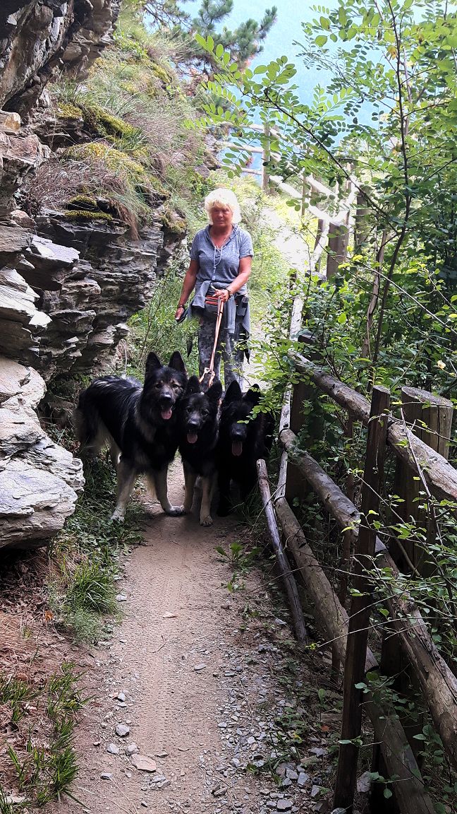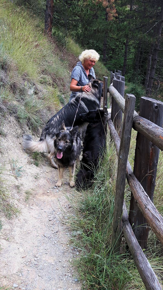 Hier haben wir jetzt nicht nur was für eingefleischte Hundefreunde. Also wer keine Lust hat, auf riesengroße und leider nicht immer so schöne Handybilder, die auch viel Landschaft zeigen, anzusehen.... derjenige sollte nun diese Seite zumachen. :-) Wir waren mit unseren Hunden in Italien, dort gibt es eine Pension, da kann man nach Anmeldung, mit seinen Hunden eine wunderschöne Zeit verbringen. Wenn es irgendwie geht, werden wir dort im nächsten Jahr so im April wieder dort hin fahren. Zu diesem Zeitpunkt sind dann auch Nina und Rüdiger mit ihren Hunden dort und trainieren. Bei Christine gibt es alles was es braucht, zudem hat man dort immer wieder einen Ansprechpartner, für alle Belange. Sei es geniale Spazierwege, oder einen versteckten See... sie weiß immer wo es schön ist und wo man mit den Hunden endlos laufen kann. Die Hunde dürfen mit ins Zimmer, allerdings gibt es da auch einen großen Nachteil, für alle die ziemlich untrainiert sind, weil... wenn man dann nach Hause kommt ist man fit! :-) Denn dort geht es bei einigen Wegen doch ziemlich gemein rauf und runter, das ""Runter""" ist ja nicht s tragisch... aber das ""RAUF"" :-) (Aber... man kann dort auch geradeaus laufen) Jedenfalls war unser Urlaub dort grandios, die Landschaft, die Luft, das Wasser, die Hunde hatten einen Riesenspaß... und wenn es irgendwie geht, sind wir im nächsten Jahr wieder mit dabei :-)