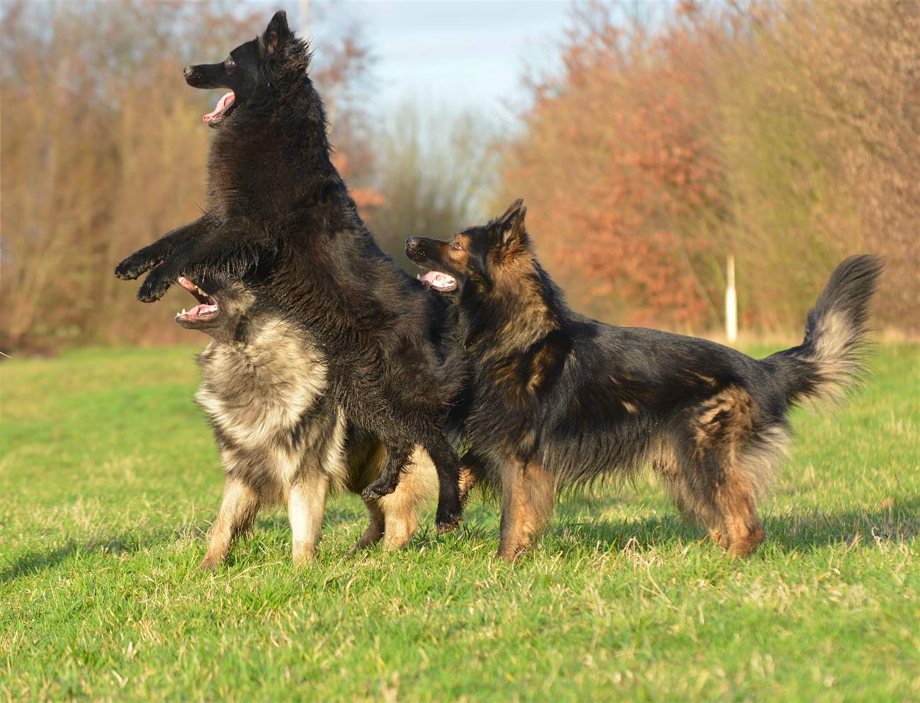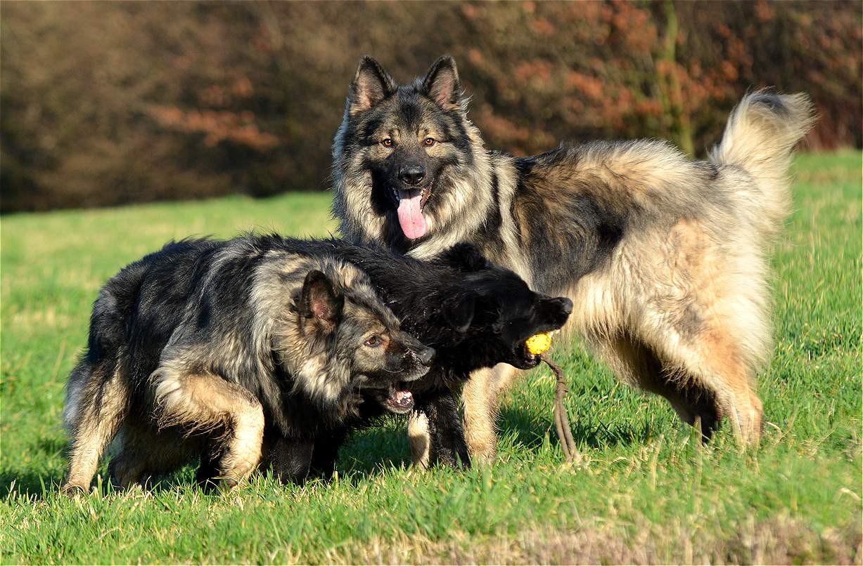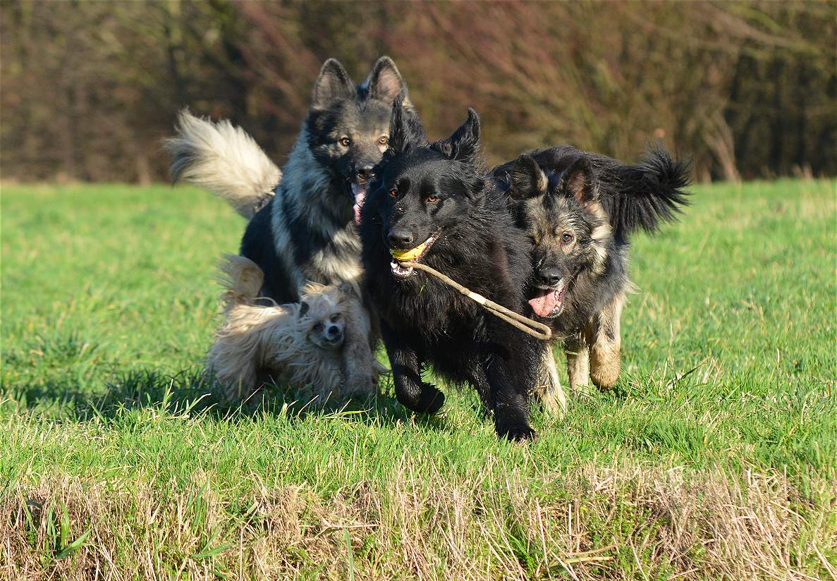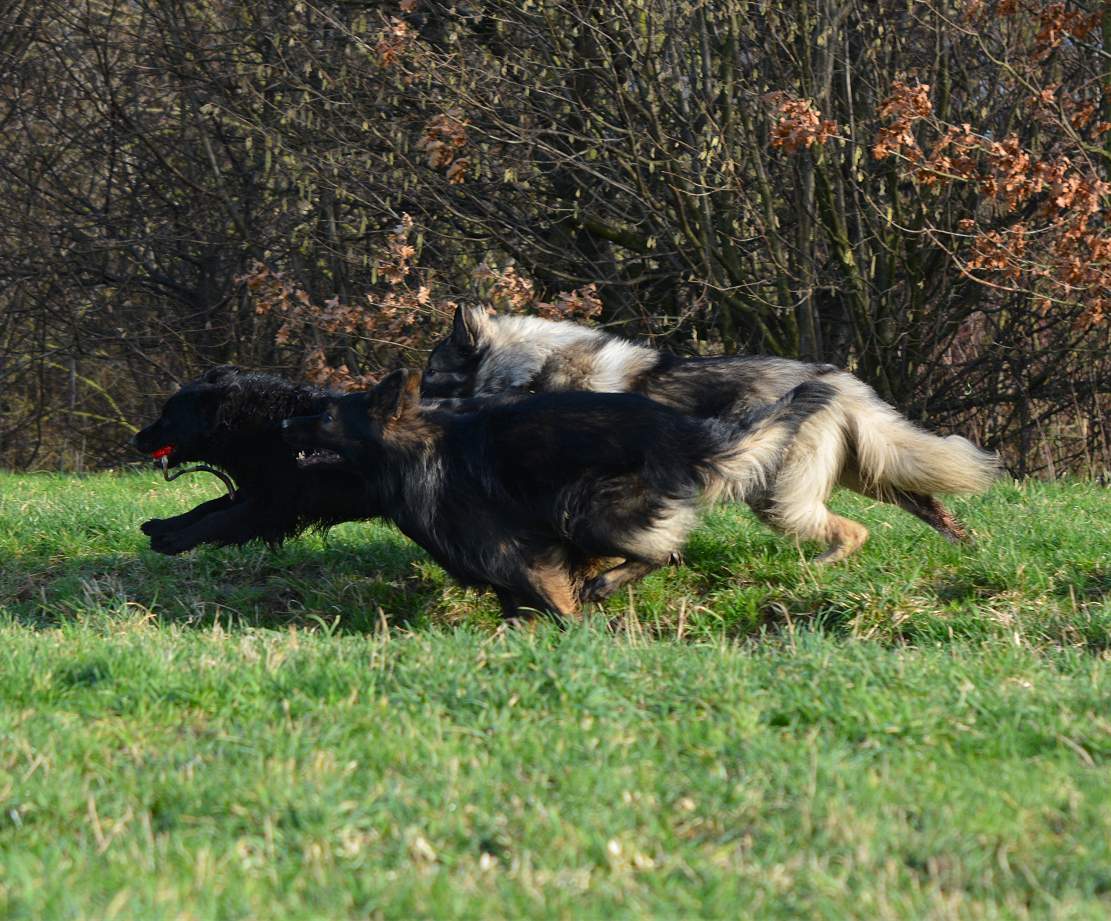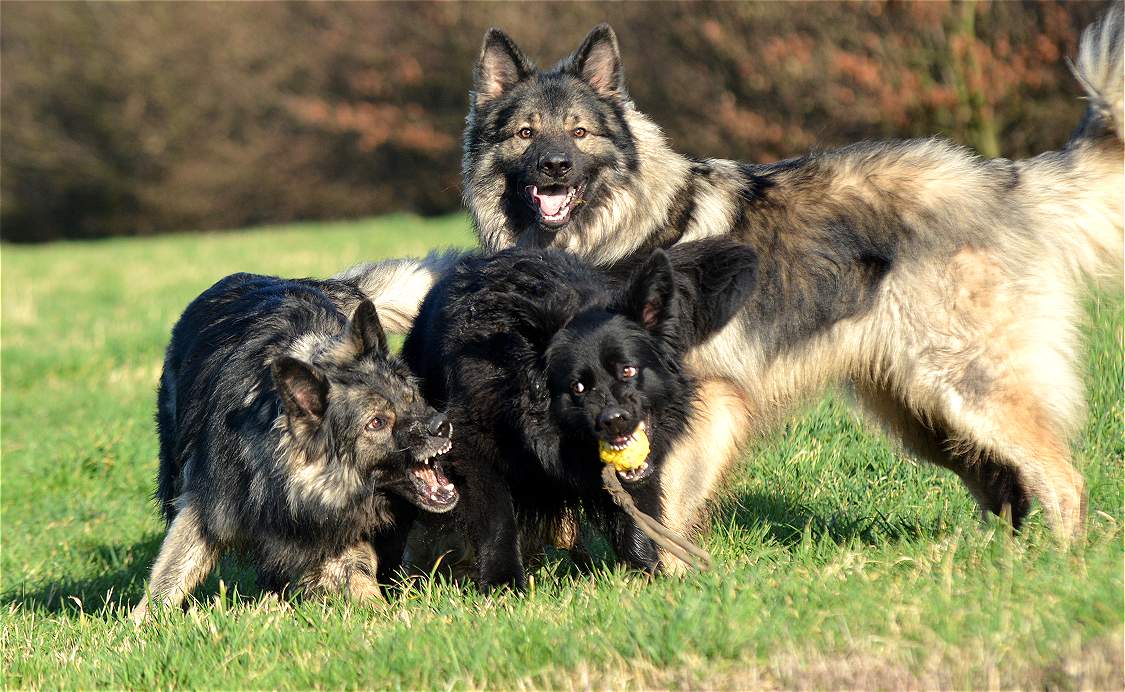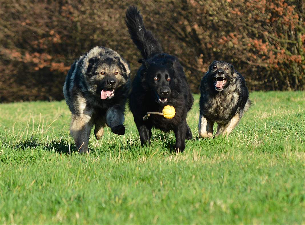 Bevor Lexa`s Mutter Chakana ganz sauer werden kann... Nazar übrigens (ist euch bestimmt schon aufgefallen) hält da mal hübsch die Klappe wenn Chefin Chakana mitrennt, weil da darf man den Mund nicht so weit aufreißen.. Das weiß ein Nazar auch sehr gut.. Und Lexa... die weiß ebenfalls genau wann Kana wirklich sauer wird und lässt dann mal ""zuuuuufällig""" natürlich den Ball fallen :-) Und allein an der Bildfolge sieht man deutlich wie fest das Gefüge ist, und wie sehr Hunde eben doch lügen können.. Nazar brüllt sonst immer rum...Lexa gibt den Ball nie und nimmer ab... Aber Im Familienverband ist Kana Cefin und da nutzt das dumme Gebrülle von Nazar gar nix und Lexa darf natürlich den Ball verteidigen und auch so tun als ob sie Kana angreift... aber nur... bis Kana sagt... Schluß...