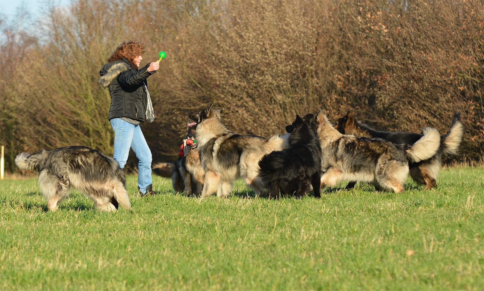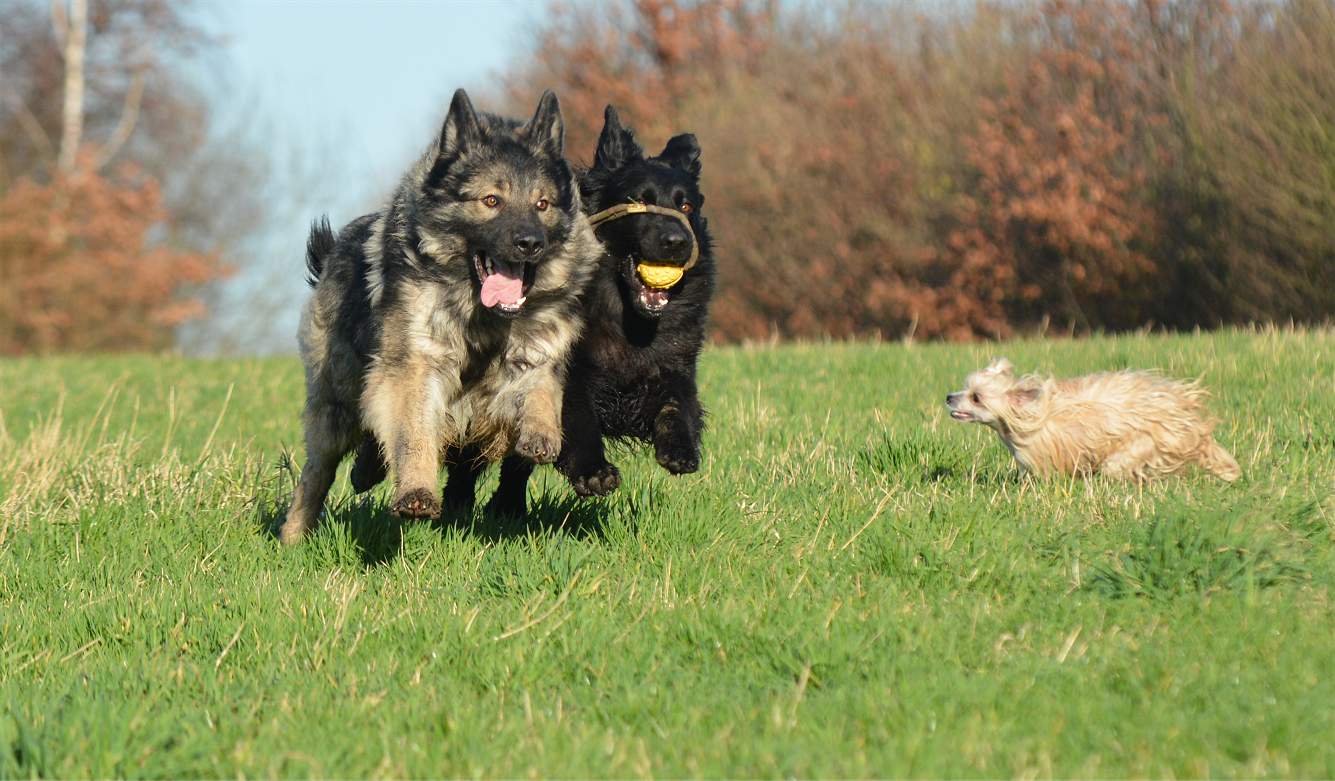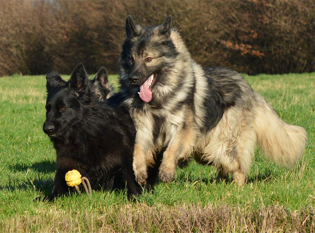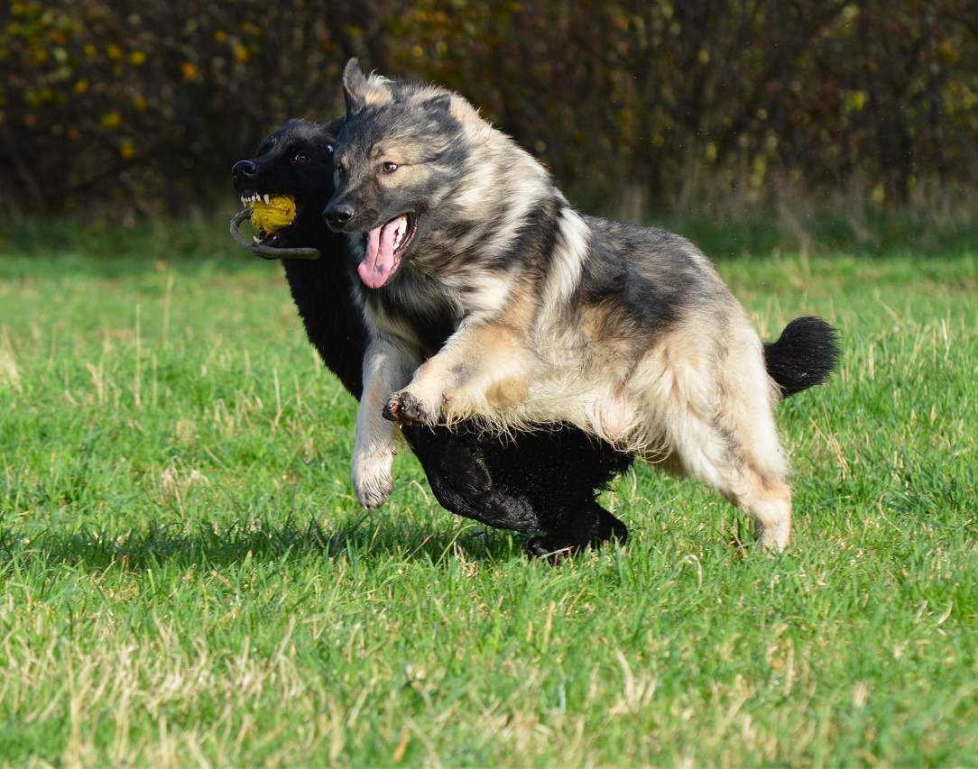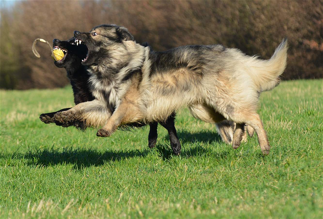 auf der Wiese wird erst mal wieder um den Ball gestritten.. Wenn ich will das Chakana viel läuft, gebe ich einfach ihrer Tochter Lexa einen Ball und ihr eben nicht.. Und schon haben wir eine Kana die unermüdlich versucht Lexa den Ball zu klauen und eine Lexa die mit aller Kraft versucht, diesen zu behalten.. Sie schreien sich an... und keifen umeinander.. aber nur Show.. Und da behaupten Menschen ""Hunde lügen nicht"" Natürlich tun sie das, zumindest soweit es im Rahmen bleibt... So schlimm das draußen aussieht ... passieren tut nichts...
