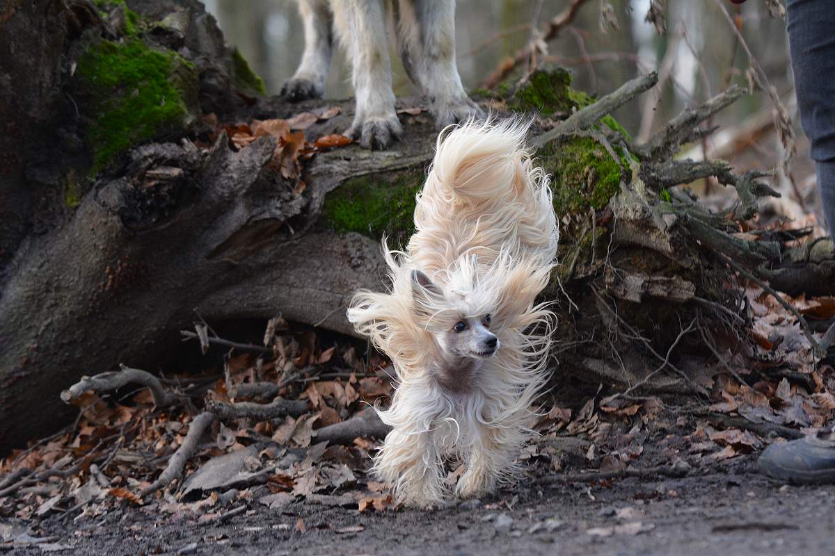 Ach ja.. unsere kleine Chinesentrulla ... die ist immer dabei... Hinter hier steht Nazar auf einem Baumstamm Leider kommt er auf Fotos nicht so irre rüber wie er wirklich im Wald aussieht!