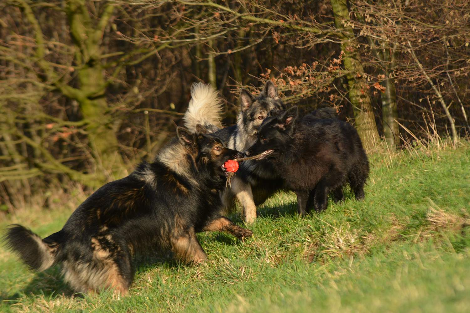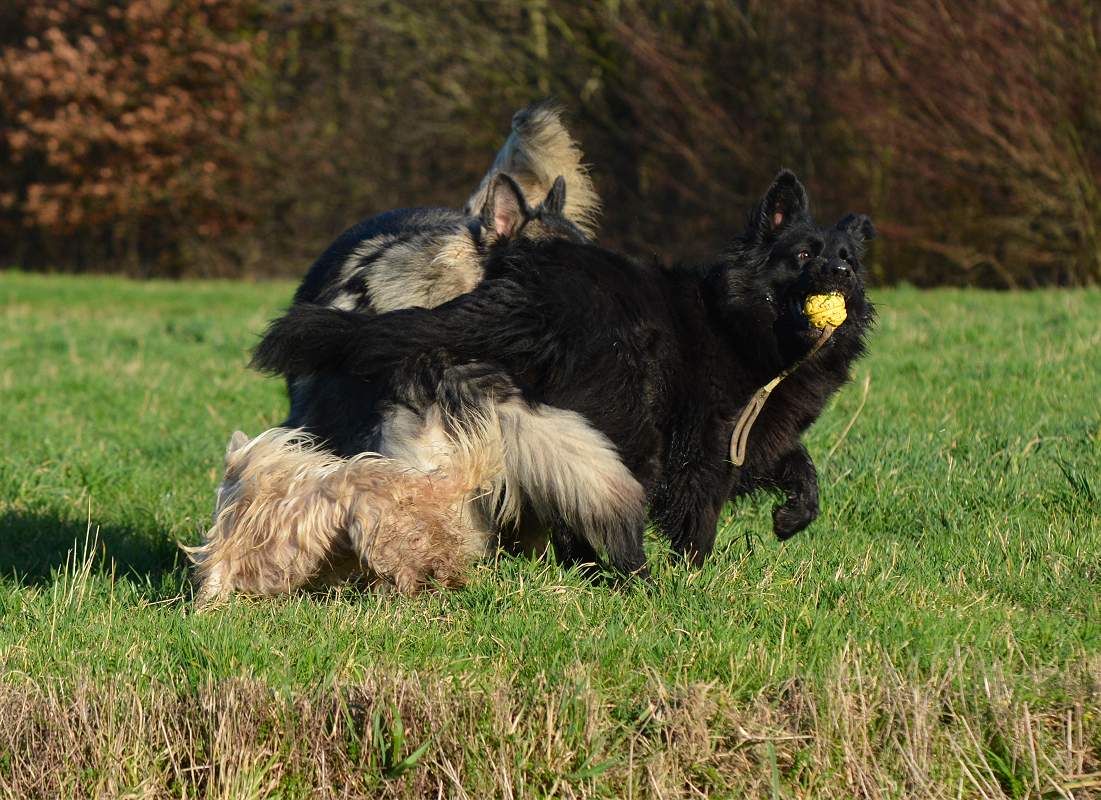 So sind alle zufrieden, Kana hat ihren Ball und knatscht drauf rum und Nazar springt umeinander.