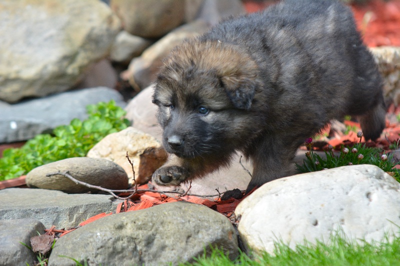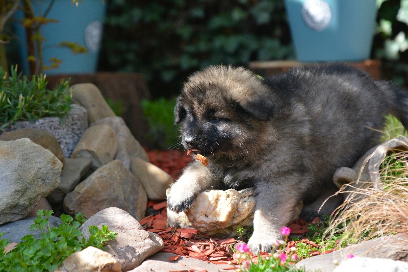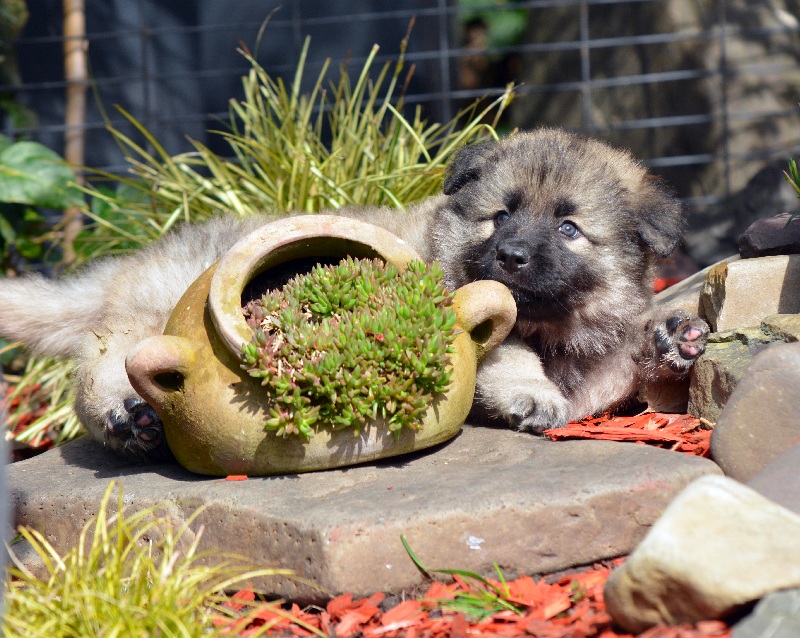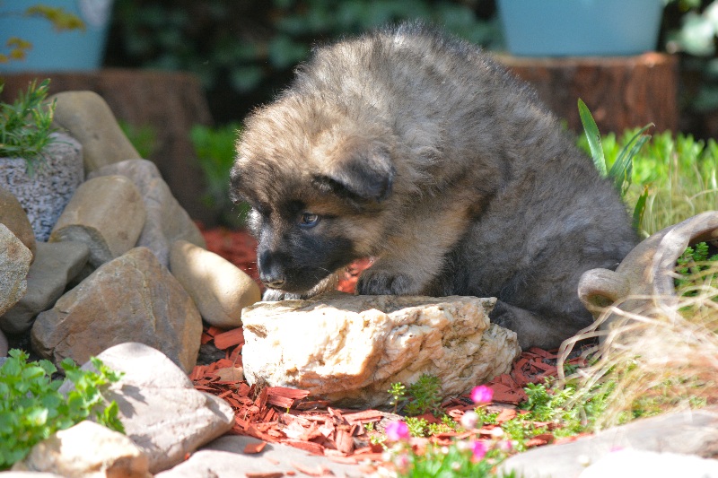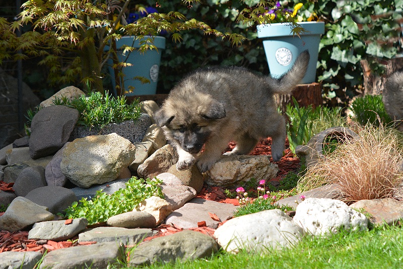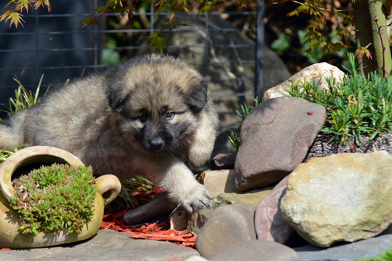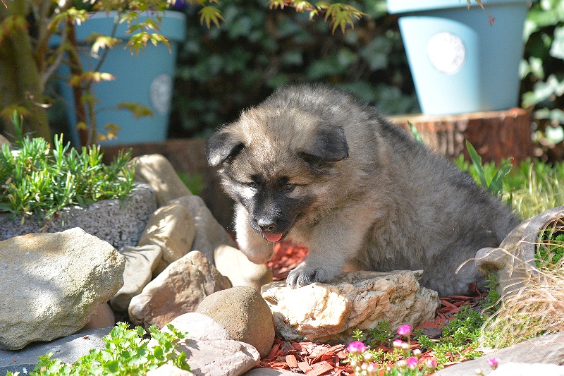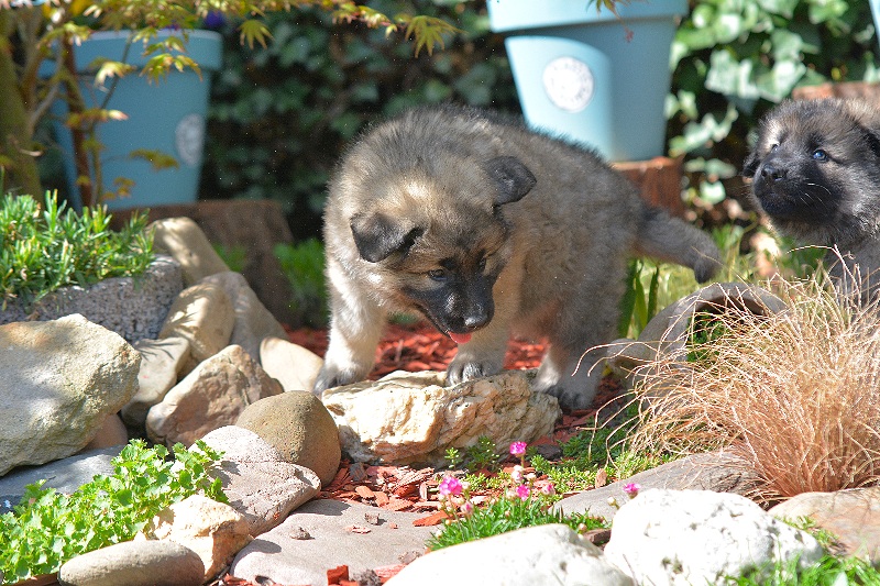 ![]() So langsam aber sicher mag ich gar nicht mehr so gerne zu fotografieren. Die Welpen sind schlimmer, ...deutlich schlimmer als ein Sack Flöhe... Man setzt sie dekorativ in die Beete, natürlich nicht ohne das sie im Vorfeld rumgerannt, und den halben Garten in Schutt und Asche gelegt haben.... In der vergeblichen Hoffnung das sie dann etwas müde sind, und.... kaum sitzen sie....sind se wech! Sandra ackert sich nen Wolf indem sie sie immer wieder zurückholt :-) Die Blicke der genervten Babys und meine Blicke..... ;-) Trotzdem hier der Versuch von vielen Fotos der Jaybabys .... |