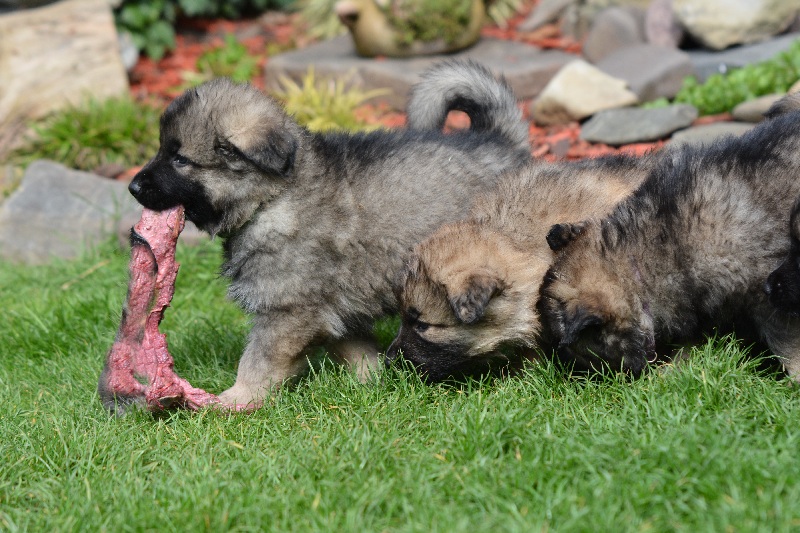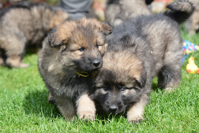 ![]() Zorro 35 Tage Braunes Halsband Hallöchen zusammen, Endlich neue Bilder von den Jay Babys. Außer dem Regenwetter ist hier alles im grünen Bereich. Die Kleinen erkunden nun auch schon sehr intensiv den Garten, sie fangen an intensiv zu spielen und finden die "Großen" zum entdecken schön. Natürlich sind sie ziemlich auf den Menschen geprägt und orientieren sich aufgrund der bedingten Flachenaufzucht sehr an dem, was Menschen so alles tun. Auch die Begrüßung von Sandra erinnert mehr an..... die Mutter kommt, .....als an ....Menschen kommen... Das wird sich natürlich ab jetzt etwas ändern, sie entdecken das Jay und auch die anderen Hunde echt gut zum Spielen taugen. Die Welpen sind aufmerksam, verfolgen nun alles explizit und aufs genaueste. Sie lernen bereits zu sitzen und bekommen ein schönes Leckerli dafür. Problem....alle wollen zuerst dran sein :-) Auf den Fotos sind die Welpen 35 Tage alt, wie immer hänge ich ein wenig hintendran. Aber das Wetter soll ja jetzt besser werden, dann gibt es natürlich unendlich viele neue Fotos. Habe dieses mal extra mega viel Fotos von jedem einzelnen gemacht. Viel Spaß beim ansehen. |