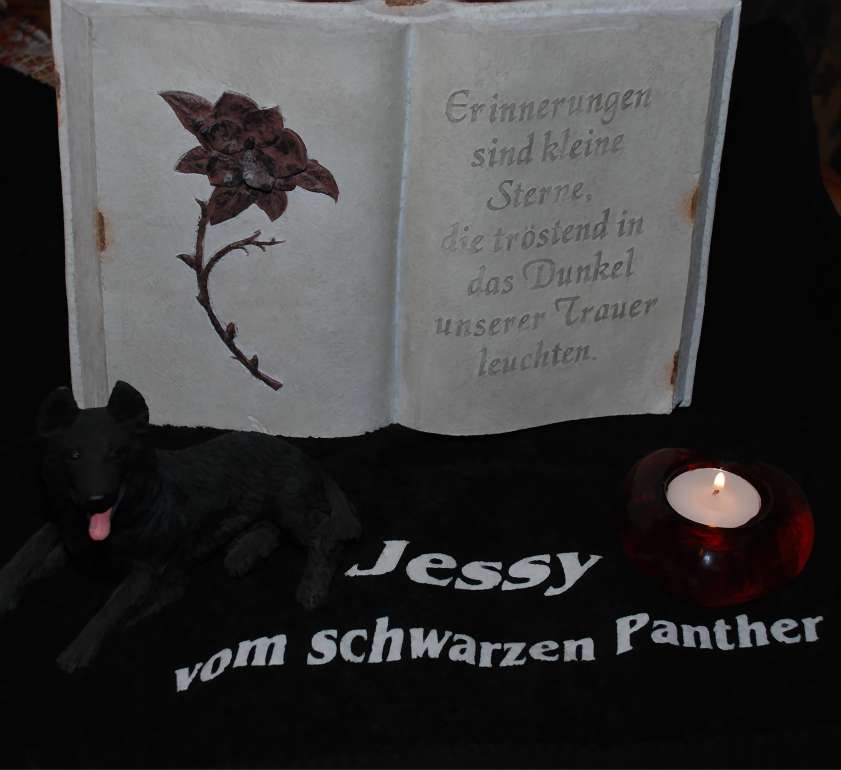 Juli 2010 Nachtrag Es ist Zeit vergangen, Zeit die ich brauchte, ........die ich immer noch brauche. Ich weiß ...ich bin nur ein Züchter... jemand dem man abspricht zu leiden, wenn ein Hund für immer geht. Aber... ich bin immer noch nicht fertig damit. Es ist so unfair, Jess war so "jung", so agil, überhaupt.... zu keinem Zeitpunkt alt und gebrechlich. Immer noch sehe ich sie, wenn ich mit ihren Söhnen und Töchtern spazieren gehe, drehe mich um und will sie rufen. Die letzten Tage gehörten nur Jess und mir, es waren lange Tage, in denen so viel passiert (irgendwann schreibe ich das auch mal auf, bisher gehört es nur Jess und mir) ist, und trotzdem ging es rasend schnell. Jess wollte am Abend vorher nicht von ihrer Wiese gehen, sie wollte die Nacht dort verbringen. Sie wusste es so genau .... So blieben wir dort, Jess und ich und schauten den Sternen zu und ich erzählte ihr soviel....