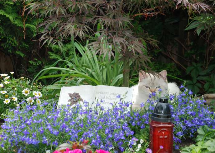 Jess liegt jetzt neben mir, gestern bin ich ein bisschen angegangen worden, warum ich sie nicht sofort einschläfere. Warum ich eine Chemo mache, warum ich überhaupt noch was mache. Ich kann es euch sagen... Weil es meine Jess ist, weil wir Abschied nehmen, weil ich Jess Katzenfutter gebe, das sie ihr ganzes Leben so gerne gemocht hat, und nie gedurft hat, weil ich ihr noch ein paar wunderschöne Tage machen will, weil ich nicht mehr mit ihr ans Meer fahren kann, weil...weil.. weil... ich noch eine ganz kleine Weile bei ihr sein will, und ich glaube..sie auch! Jess hat keine Schmerzen, sie ist müde, sie liegt viel, aber es gibt diese Momente, die Momente die auch jetzt noch zu einer halben Stunde werden. Sie liebt das olle Plantschbecken, gestern war sie den ganzen Morgen über sehr müde,.... ich hab schon gedacht.....