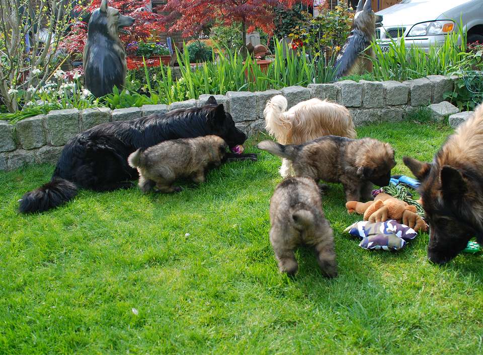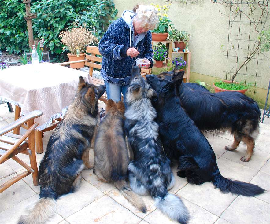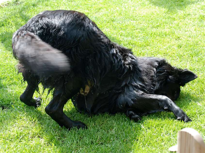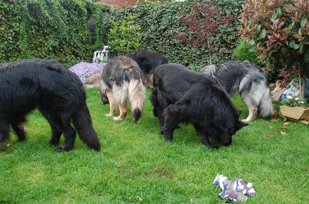 Ihr Lieblingsspiel, versteckte Leckerchen suchen im Garten Alleine will sie das nicht, sie möchte alle dabei haben, wie immer eben.