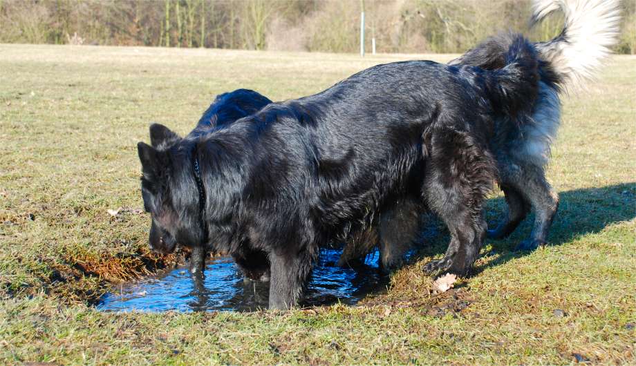 Das Wetter, ist ganz klar Jess-Wetter. Jess ist ein Hund der Kälte mag, sie mag Regen und sie mag wenn die Wiesen nass sind. Der Sommer ist für Jess nur in Verbindung mit Wasser toll.