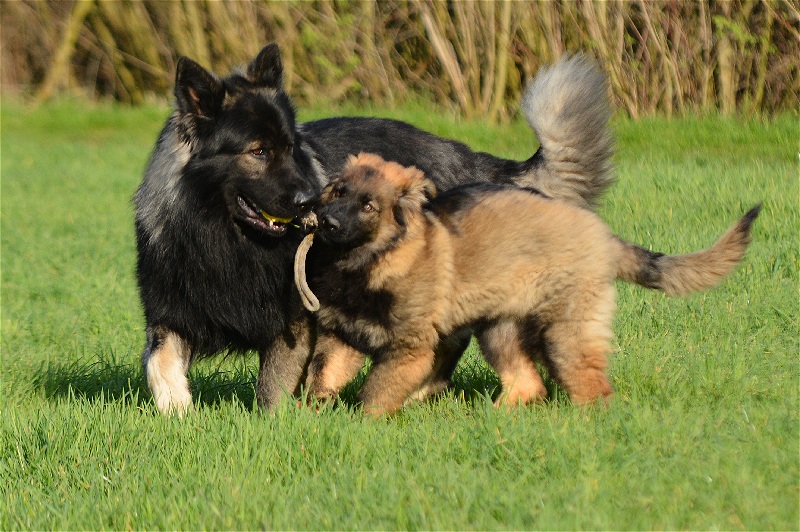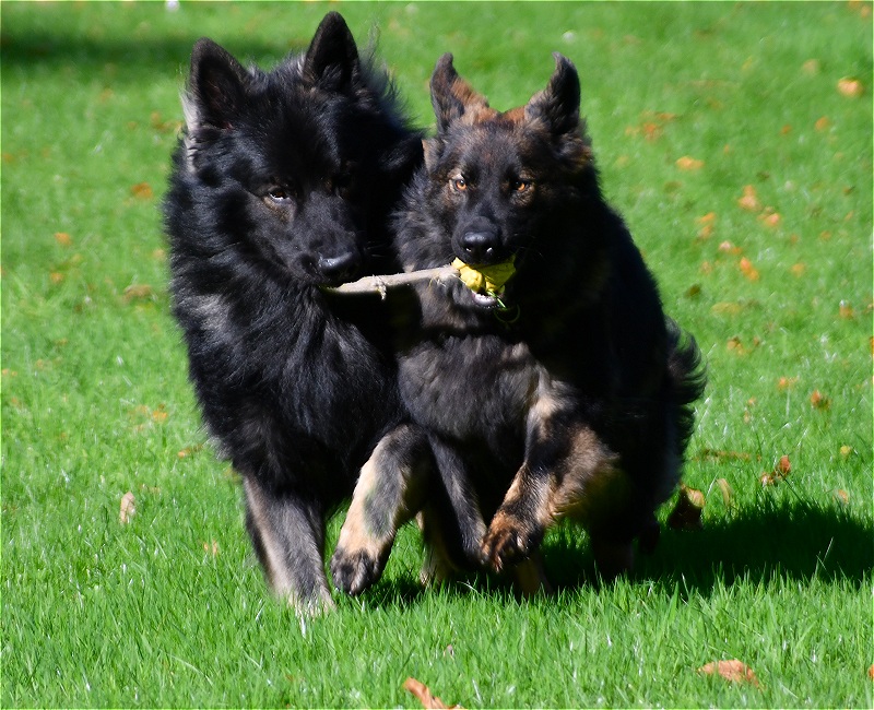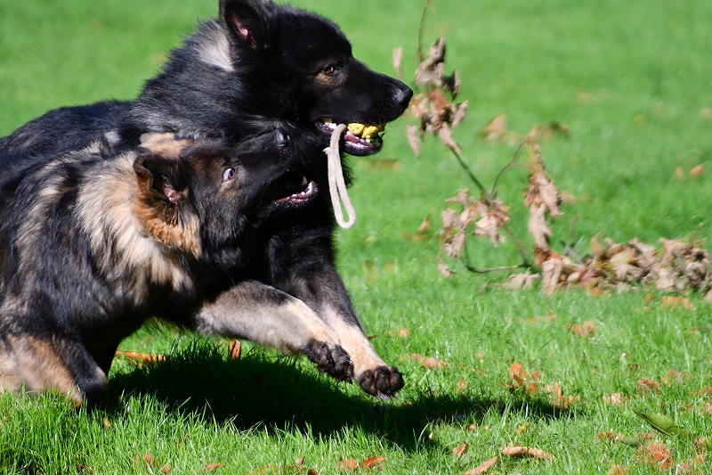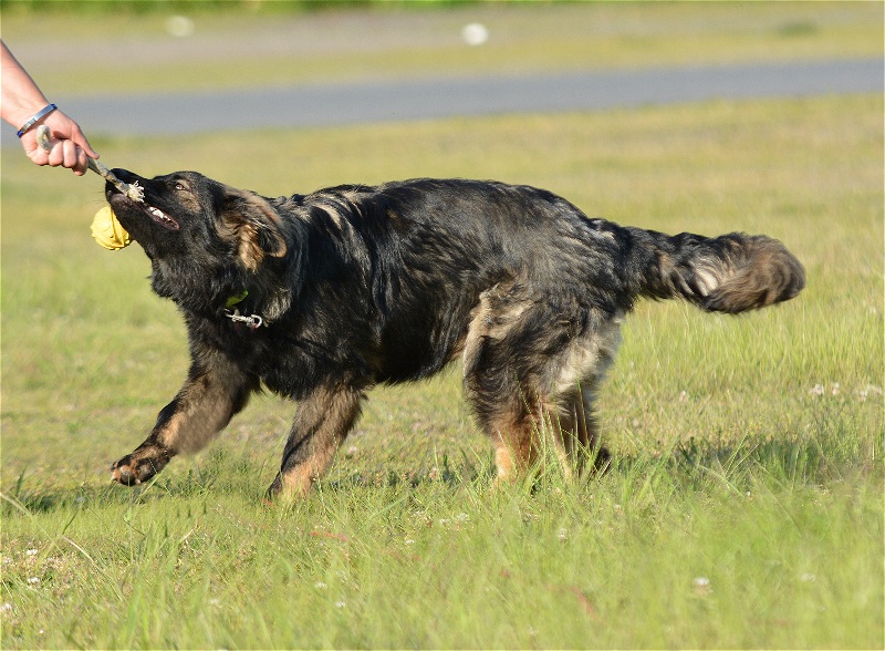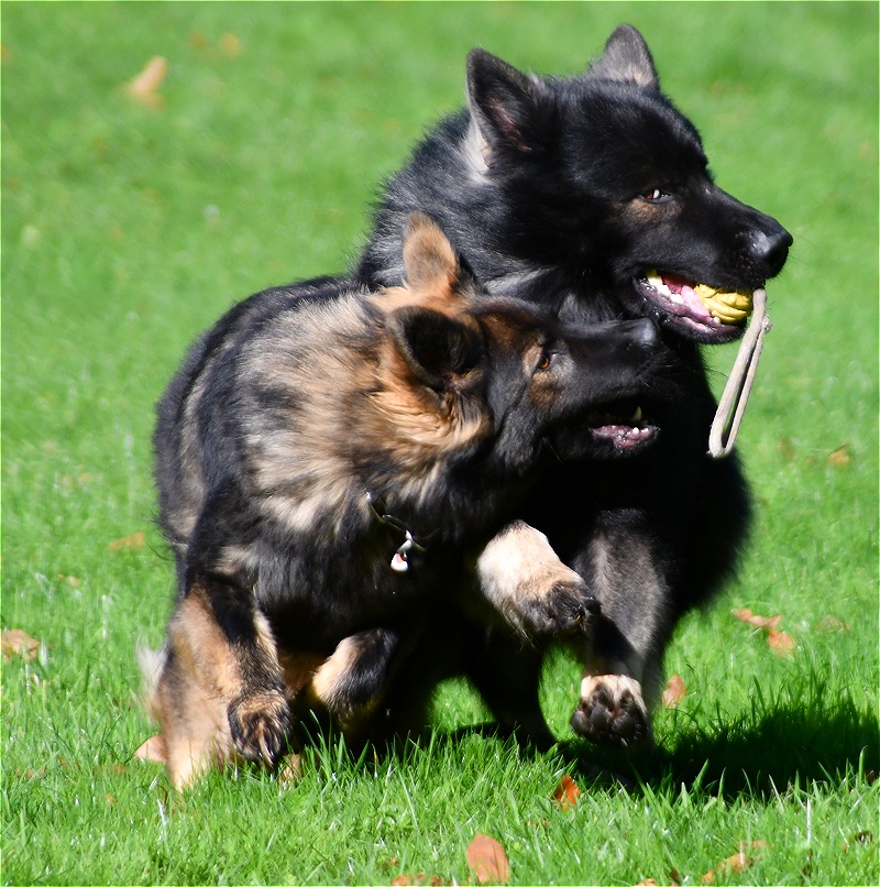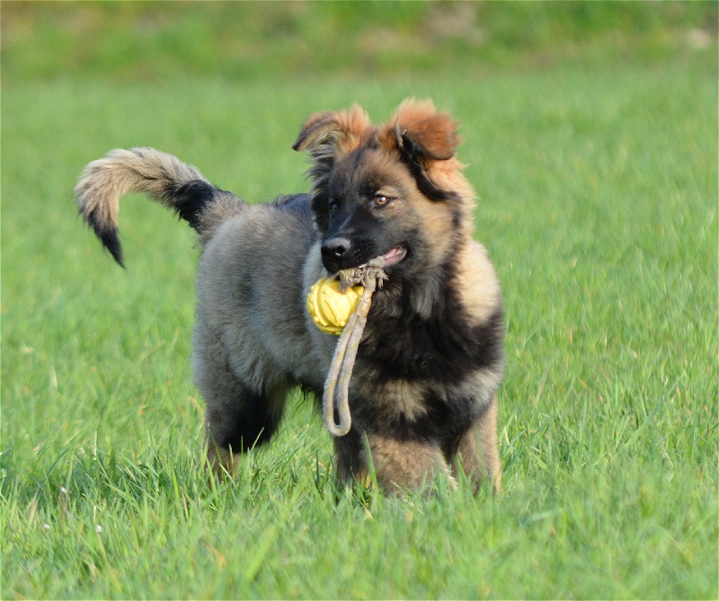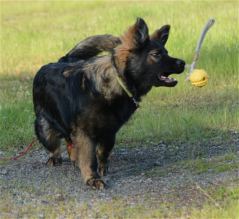 ![]() Ballspielen ist lustig, kann man doch immer feste in den Hund reinbeißen den man gerade verfolgt. Leider reicht ihre Geschwindigkeit noch nicht aus, den Ball erwischen zu können.. |