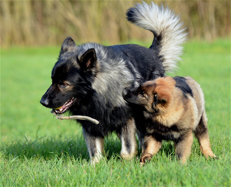 ![]() Mit Jay hat sie die perfekte Ersatzmutter gefunden. Jay mag Welpen ganz besonders und klein LaToya darf sie feste an sie kuscheln und in ihrer Obhut schlafen. |