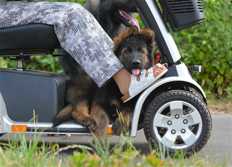 kleine Chinesenhündin im Fußraum beherbergen und... vor allem können die Schäferhunde mitlaufen und genau das