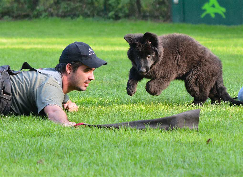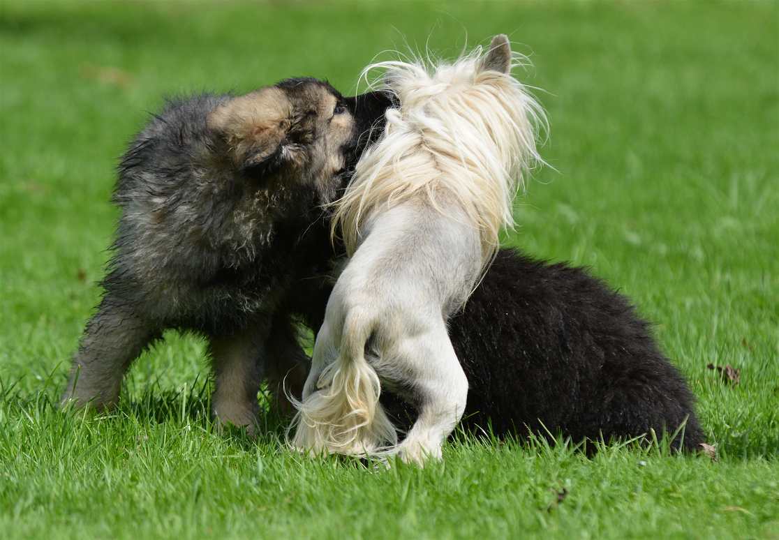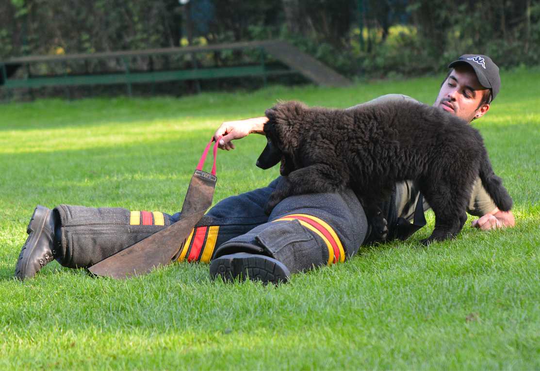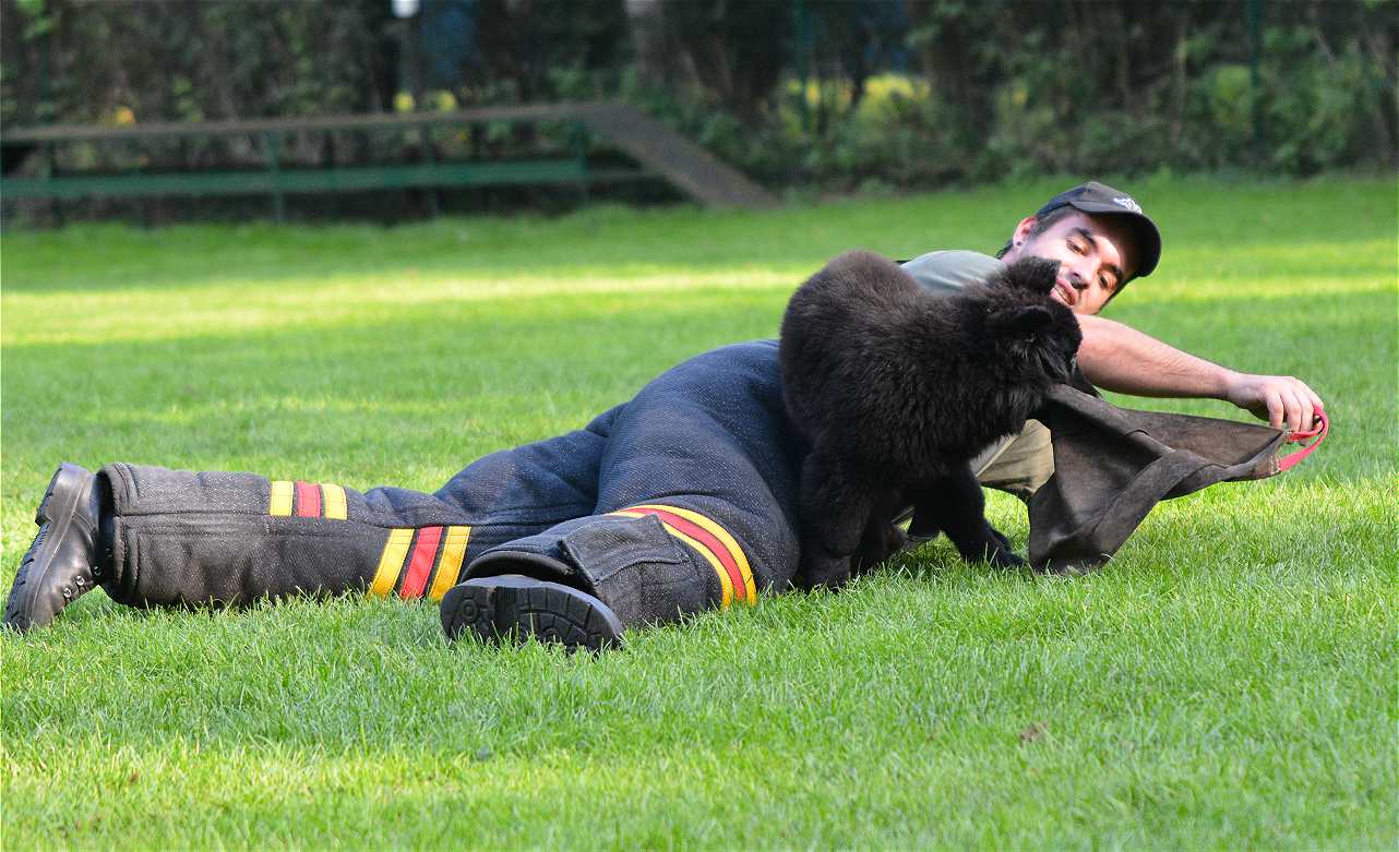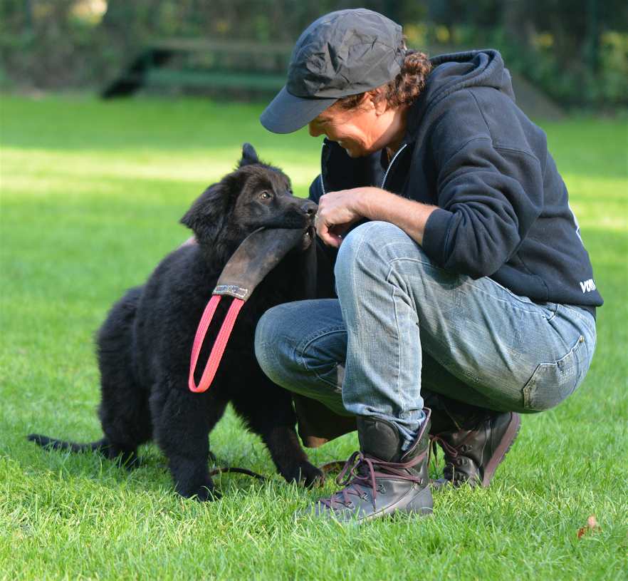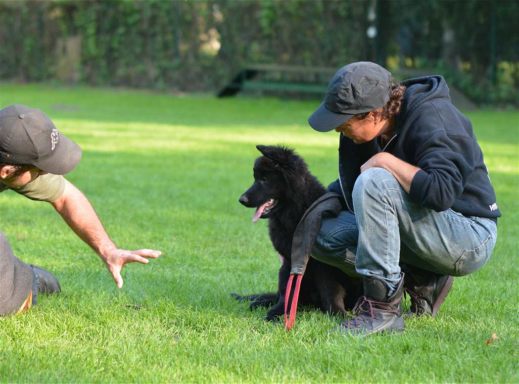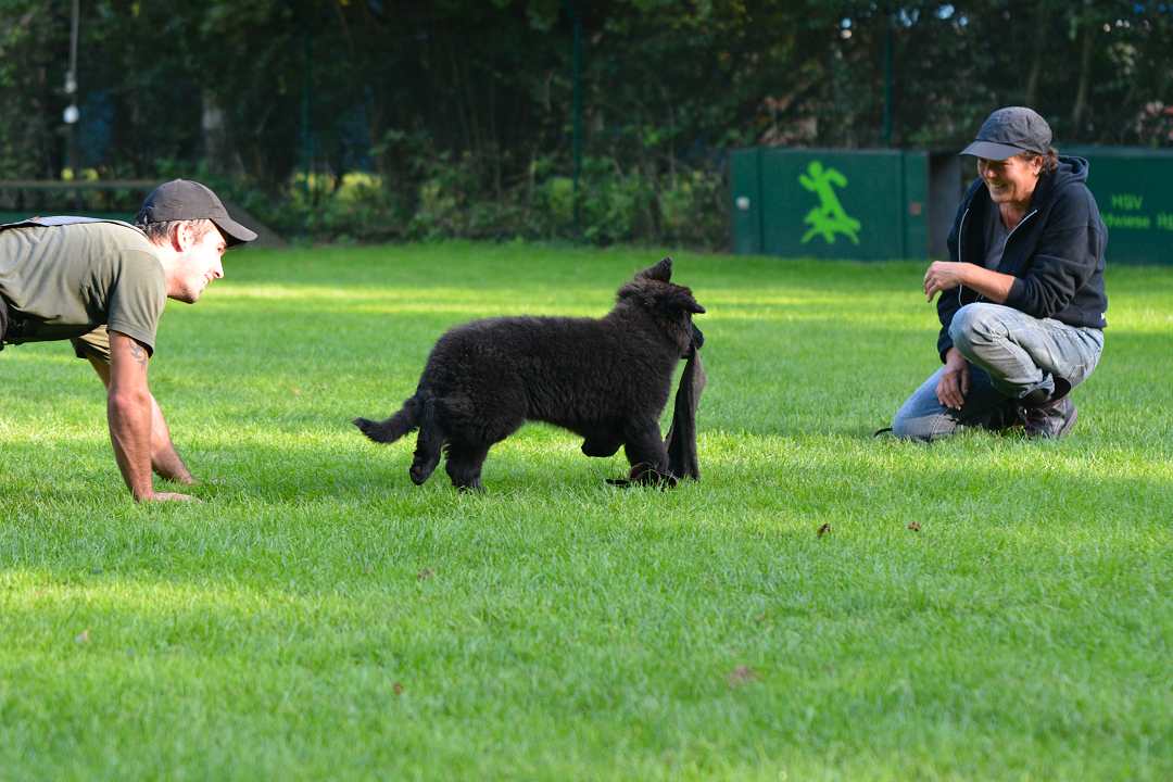 Hundeplatz, auch kein Thema. Wir haben ihr schon mal ein bisschen den ""Schutzdienst"" gezeigt. Und diese Bilder stelle ich mit voller Absicht ein, denn besser als diese Fotos kann man nicht klarmachen, das es beim VPG Sport nicht darum geht, Menschen zu beißen, sondern darum ein Beutespiel perfekt zu beherrschen. Auch so kleine Hunde wie Lexa mit gerade 12 Wochen können sehr wohl lernen, was sie sollen. Und das Lernen gestaltet sich reinweg als Spiel und spaß für den Hund.
