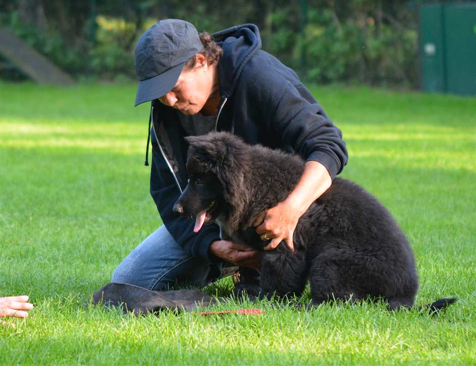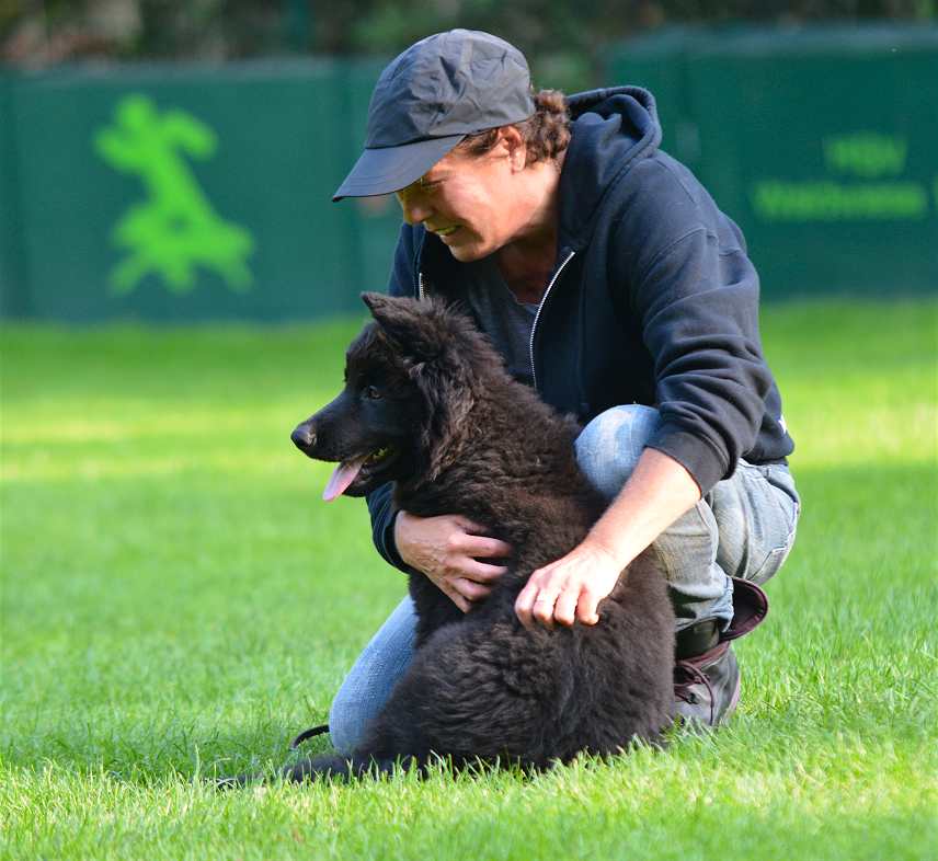 Lexa gefällt mir richtig gut. Sie ist sehr aufmerksam, lernt gut und schnell, ist nicht wirklich zu beeindrucken und dabei sehr führig und gehorsam. Zudem hat sie "furchtbar" dicke Beine, einen ziemlich mächtigen Kopf für eine solch junge Hündin. In der Regel stehen die Ohren, aber sie zahnt ganz gruselig und manchmal wackelt es oben auf dem Kopf "bedenklich :-) hin und her. :-)