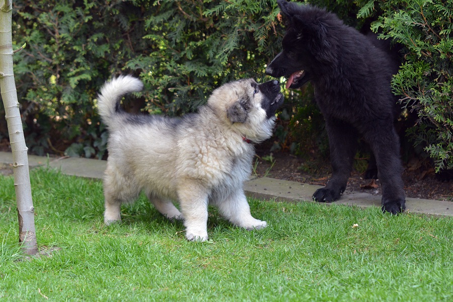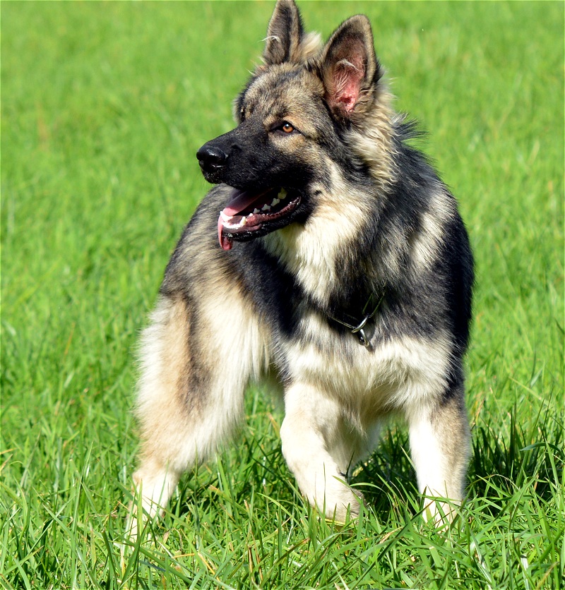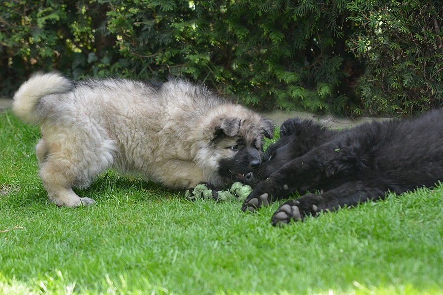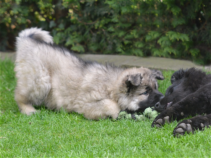 ![]() Schaut mal da ist ein minimal älteres Foto mit ihrem Vater Nazar, Man sieht deutlich den Silber Anteil der sich schon nach unten ins Wildfarbene zieht. Schaut mal wie groß sie schon ist. Luxe ist eine überaus temperamentvolle Hündin die gerne mit den anderen in Konkurrenz tritt und sich dort beweisen möchte. Allerdings hat sie noch nicht so ganz die Spielregeln drauf. Sprich sie grabscht denn Ball und kommt dann leider noch ein wenig schlecht mitsamt dem Ball zurück. Das das Spiel dann zunächst ins Stocken gerät, versteht sie dann nicht so wirklich. Aber das wird noch! |